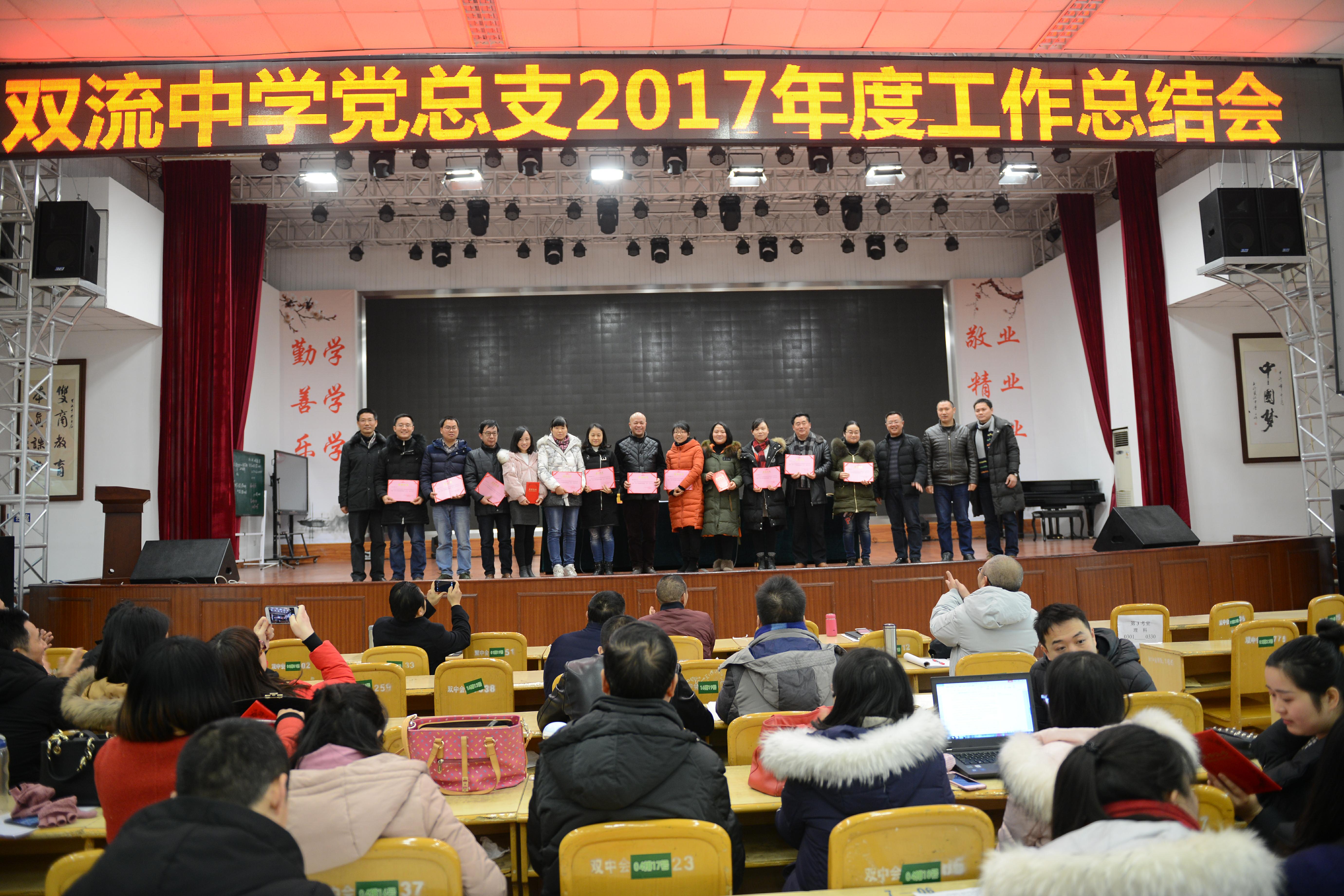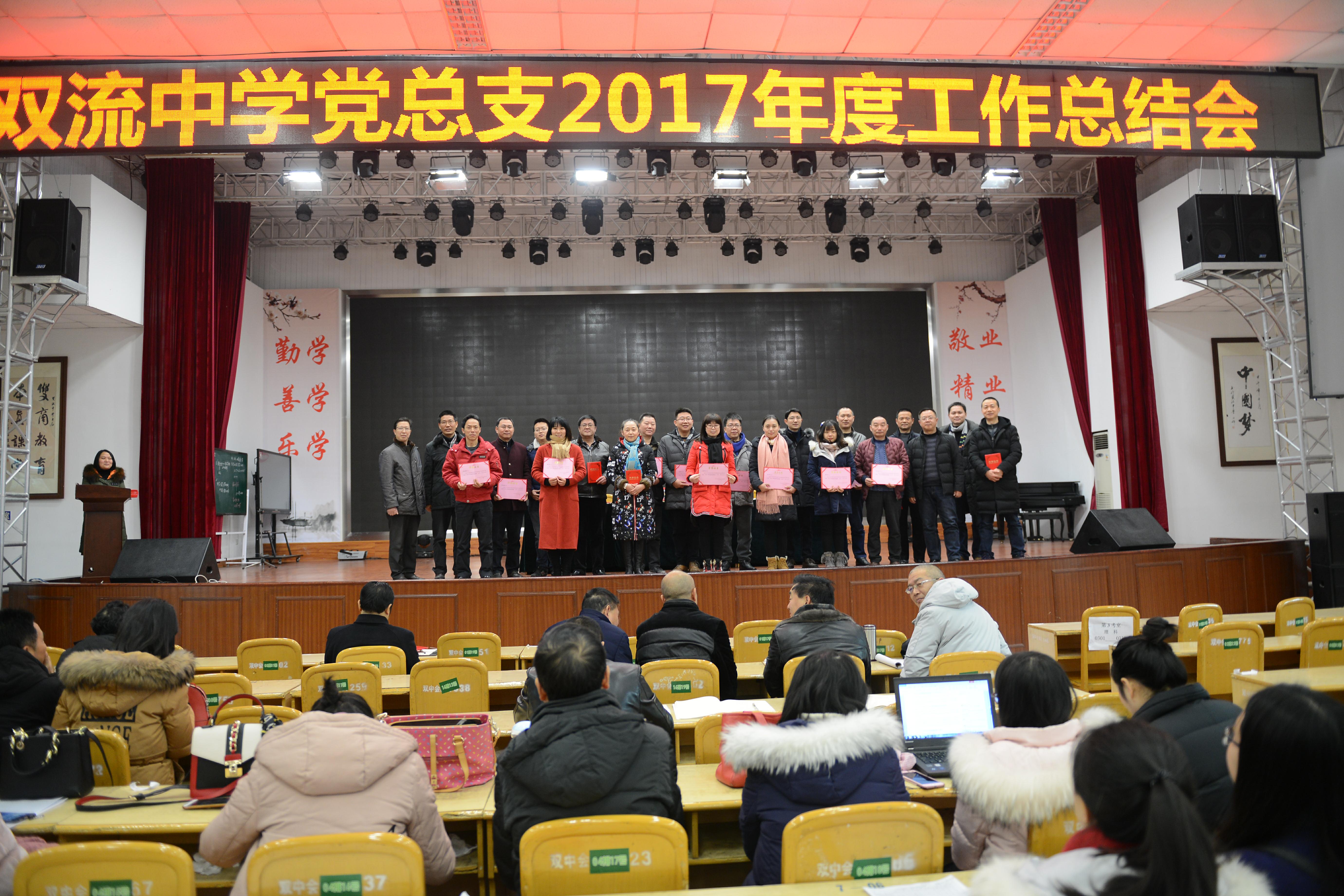 2018年1月31日上午,雙流中學(xué)黨總支在學(xué)校多功能一廳召開(kāi)2017年度工作總結(jié)暨優(yōu)秀黨員表彰大會(huì)。