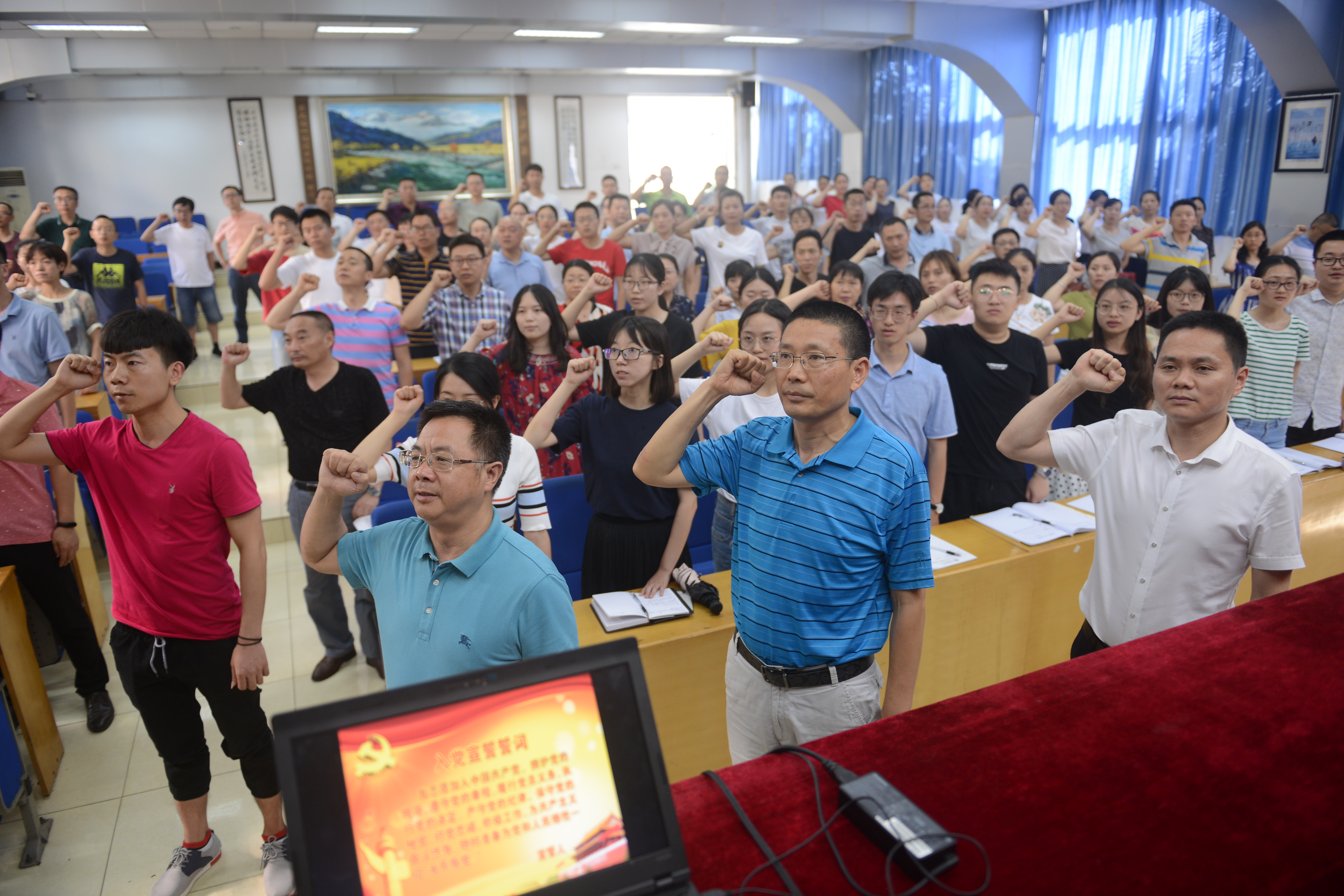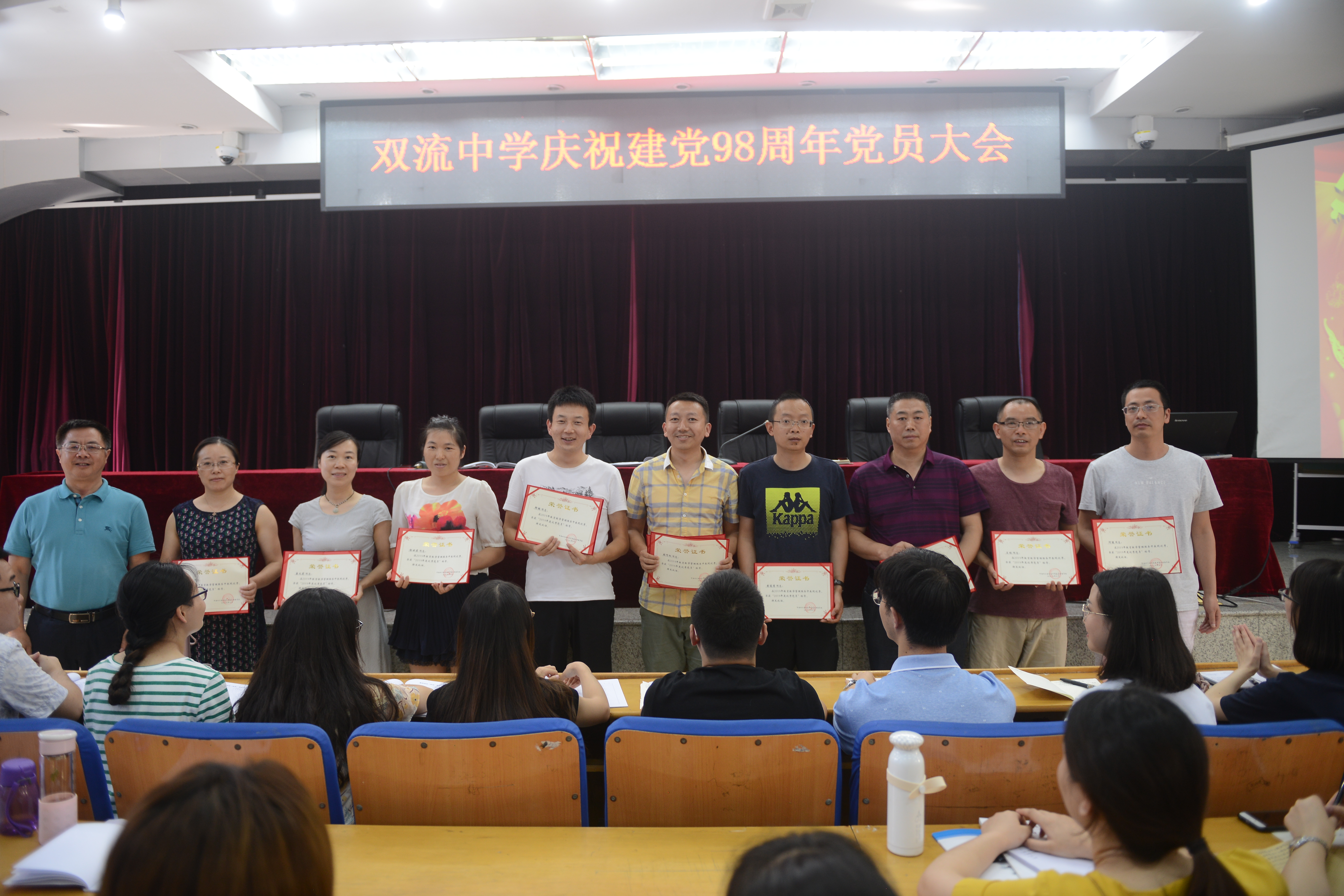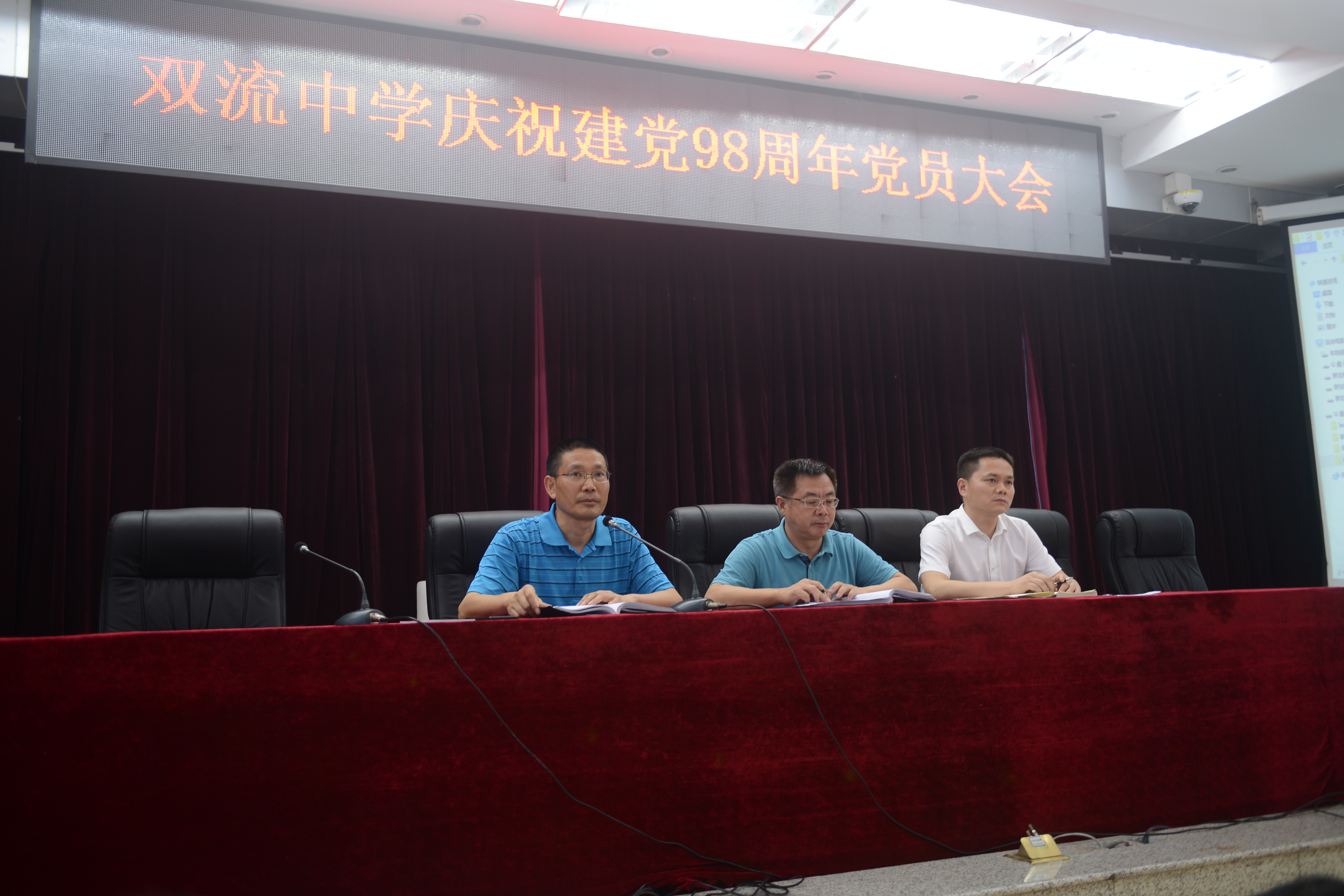 為慶祝建黨98周年,雙流中學于2019年7月1日下午,在學術演講廳召開全校黨員大會,會議由雙流中學黨總支副書記向發(fā)友主持,全體黨員參加了此次會議。