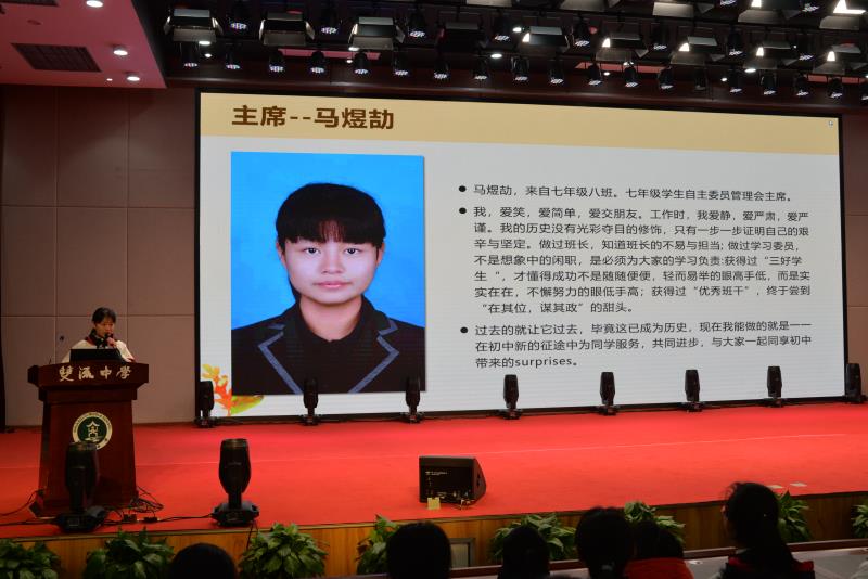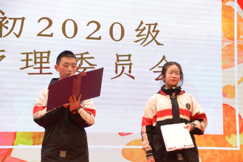 接著,七年級(jí)學(xué)生自主管理委員會(huì)主席馬煜劼和副主席鄧嬡君、米陽(yáng)分別發(fā)表了自己的就職演講,并帶領(lǐng)自己分管部門的部長(zhǎng)級(jí)干事做就職宣誓。作為初中部的新鮮血液,期待他們?cè)谛聦W(xué)期的展現(xiàn)。