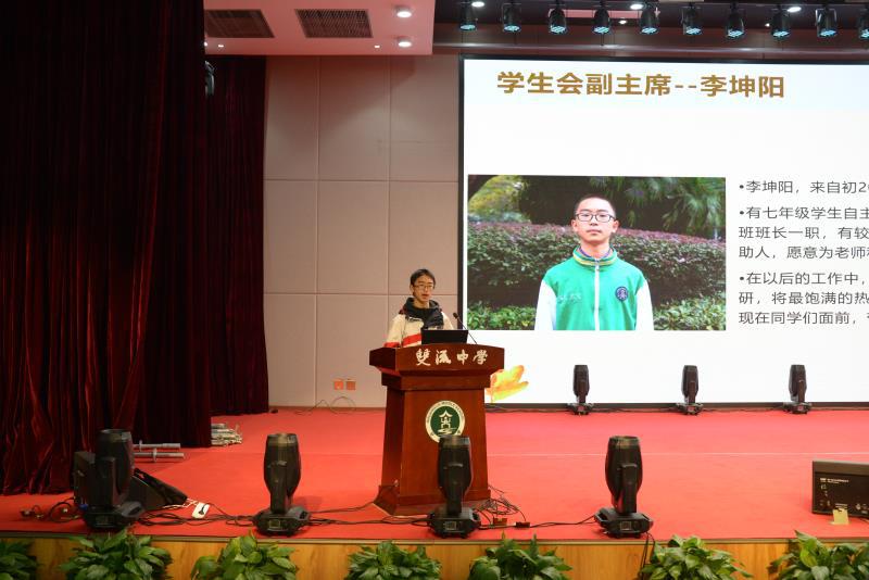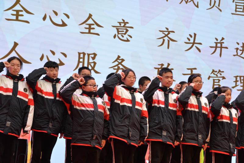 首先,學(xué)生會(huì)主席鄧舒暢同學(xué)上臺(tái)發(fā)表就職演講。鄧同學(xué)總結(jié)了一學(xué)期的工作,確定了新學(xué)期的目標(biāo)。緊接著,學(xué)生會(huì)副主席李坤陽(yáng)做了部門介紹,各部長(zhǎng)上臺(tái)進(jìn)行部門宣講。宣講完畢,學(xué)生會(huì)主席帶領(lǐng)各部長(zhǎng)進(jìn)行宣誓。作為全初中部的領(lǐng)導(dǎo)者,相信他們一定會(huì)在今后的工作中認(rèn)真負(fù)責(zé),帶領(lǐng)所有同學(xué)邁上更高的階梯。