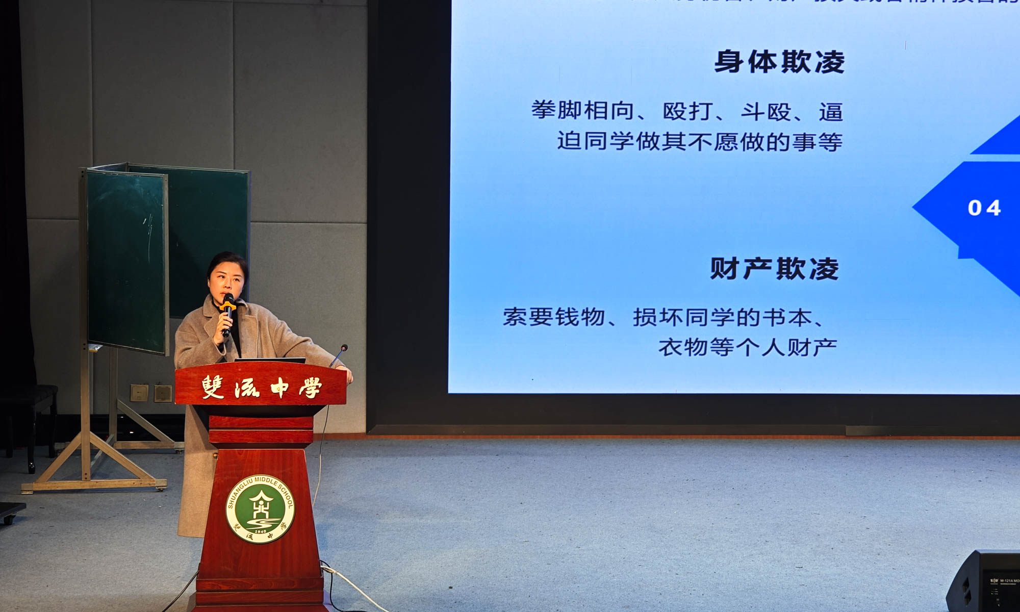 為進一步加強法制教育,增強學(xué)生的法治觀念,促進學(xué)生身心健康發(fā)展,持續(xù)做好校園欺凌和未成年違法犯罪的防治工作,切實推動平安校園建設(shè),12月6日晚,我校邀請了知名律師暨普法公益講堂特約講師蔡蕤潔,在玉蘭廳舉辦了主題為 “青少年犯罪預(yù)防與反校園欺凌”的法治教育專題講座。