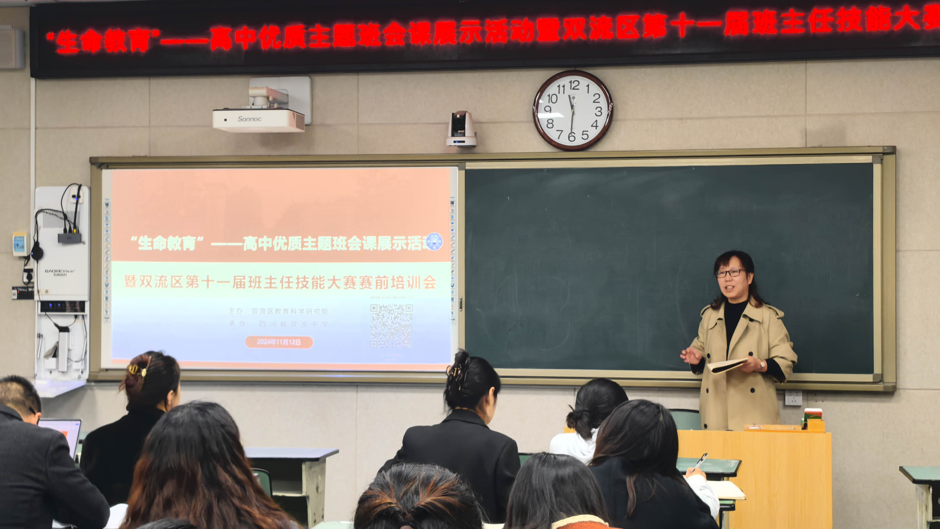 11月12日上午,以“生命教育”為主題的高中優(yōu)質(zhì)主題班會(huì)課展示活動(dòng)暨雙流區(qū)第十一屆班主任技能大賽賽前培訓(xùn)會(huì)在雙流中學(xué)舉行。