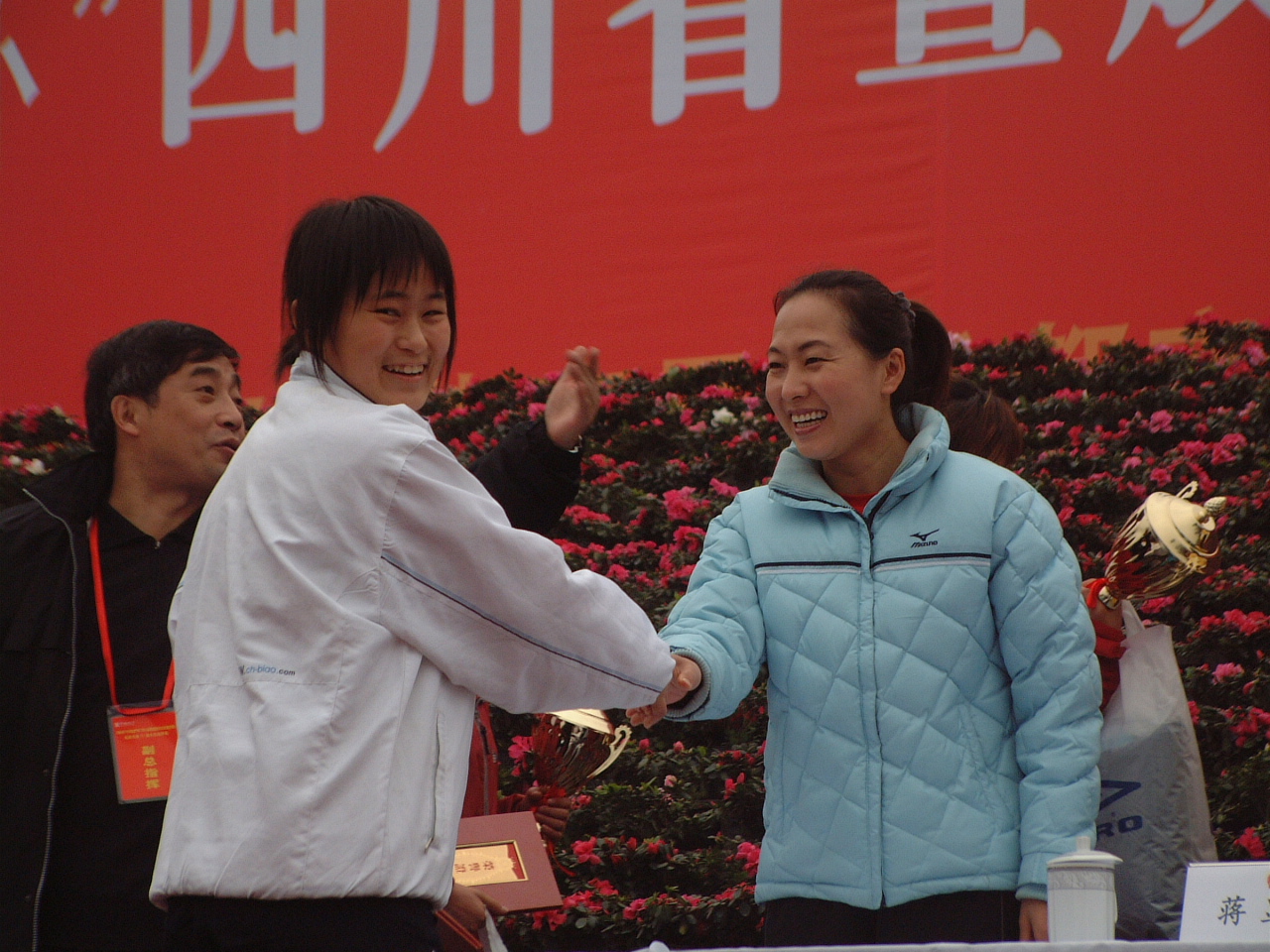 在2006年四川省暨成都市元旦越野賽上,我校田徑長跑健兒再顯神威,一舉奪得男、女各前15名中的11個名次,為雙中發(fā)展奠定了新的起點,受到奧運名將王軍霞的高度贊揚和題詞。