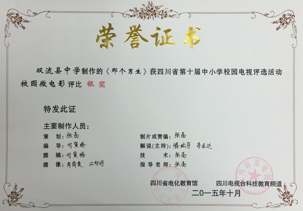 雙流中學(xué)微電影分別獲省級(jí)金獎(jiǎng)和銀獎(jiǎng)雙流中學(xué)微電影分別獲省級(jí)金獎(jiǎng)和銀獎(jiǎng)