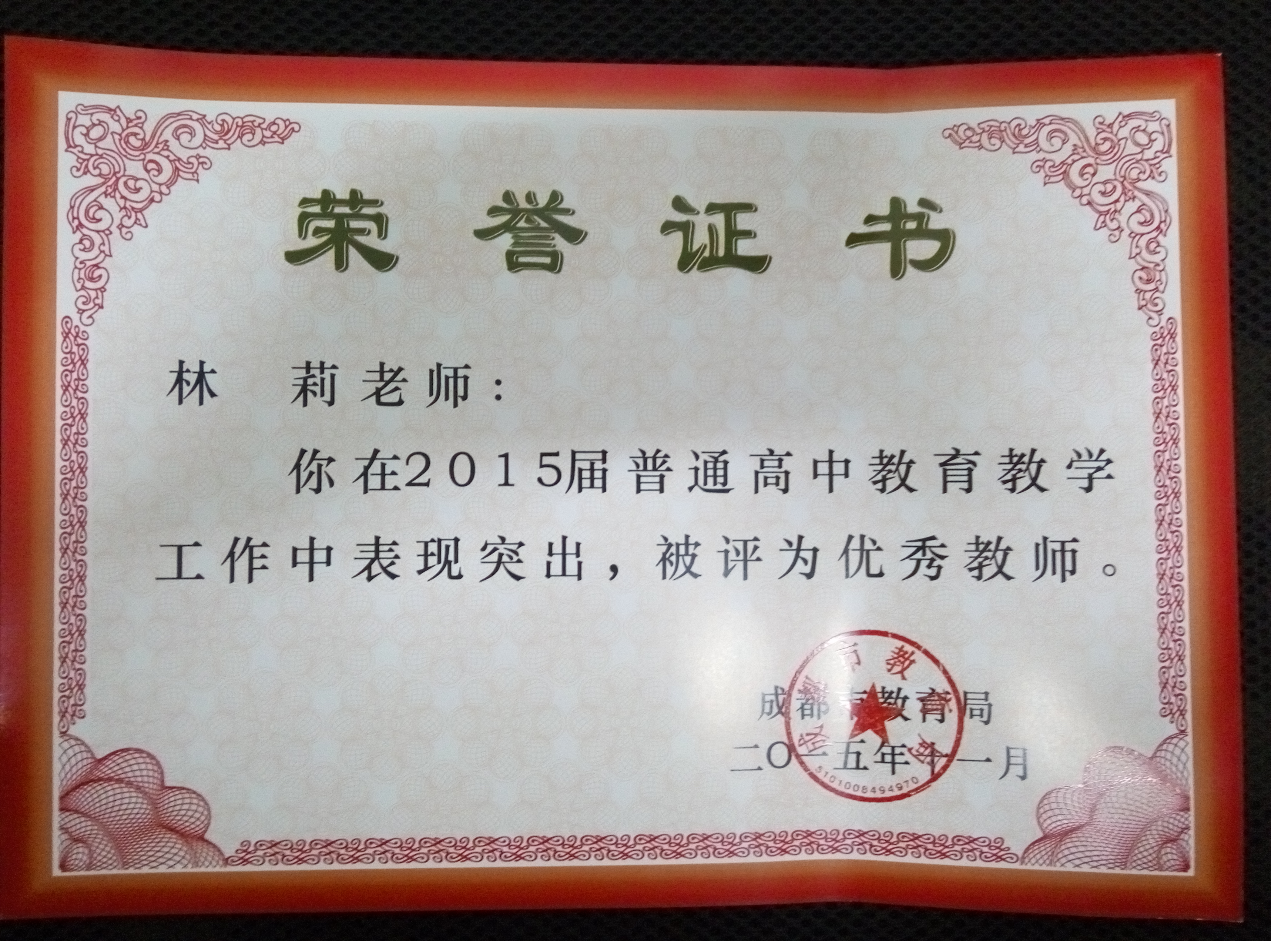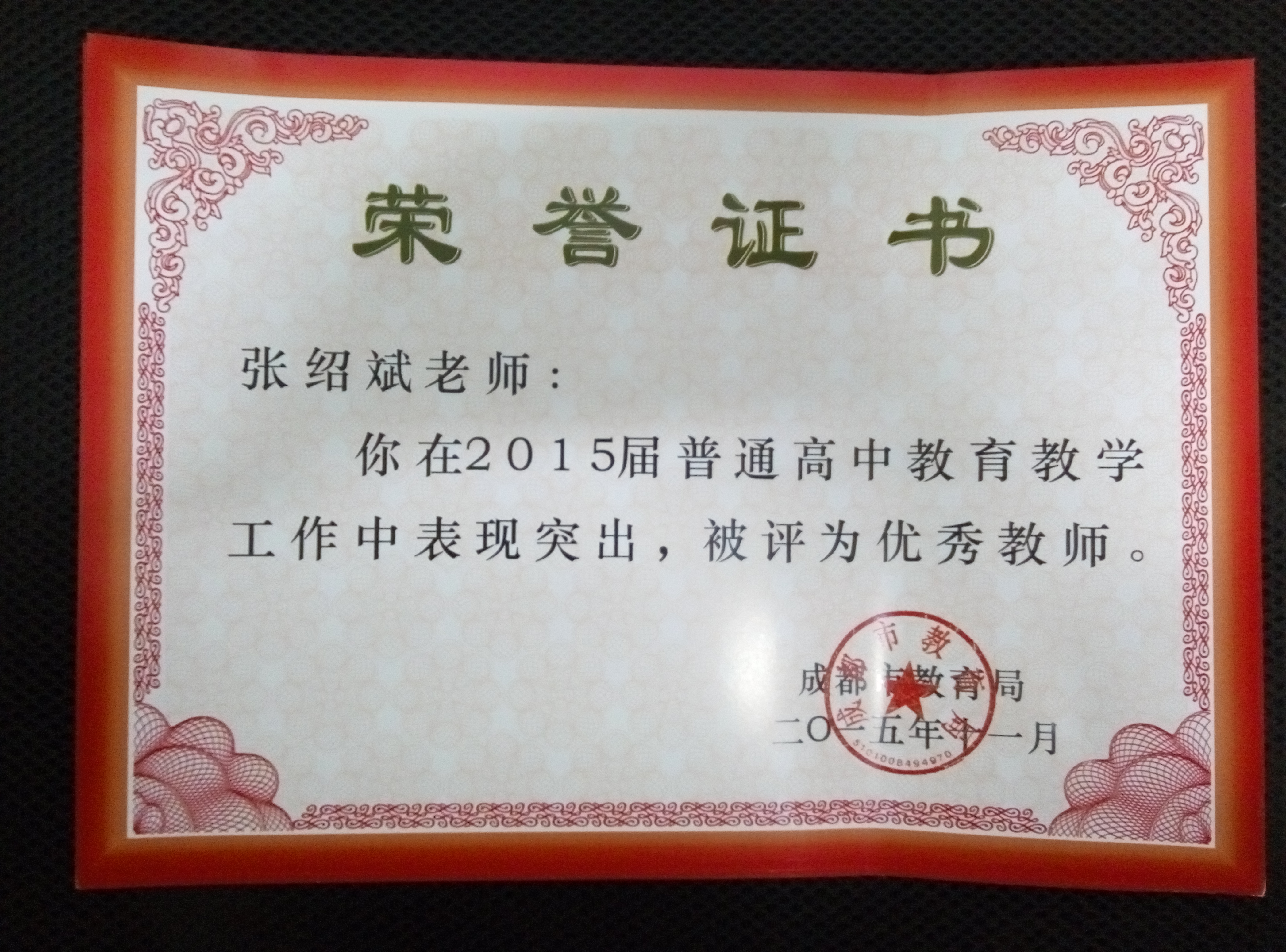 學(xué)校林莉、楊輝、張紹斌及鄭治國四位教師被評為“成都市優(yōu)秀教師”!