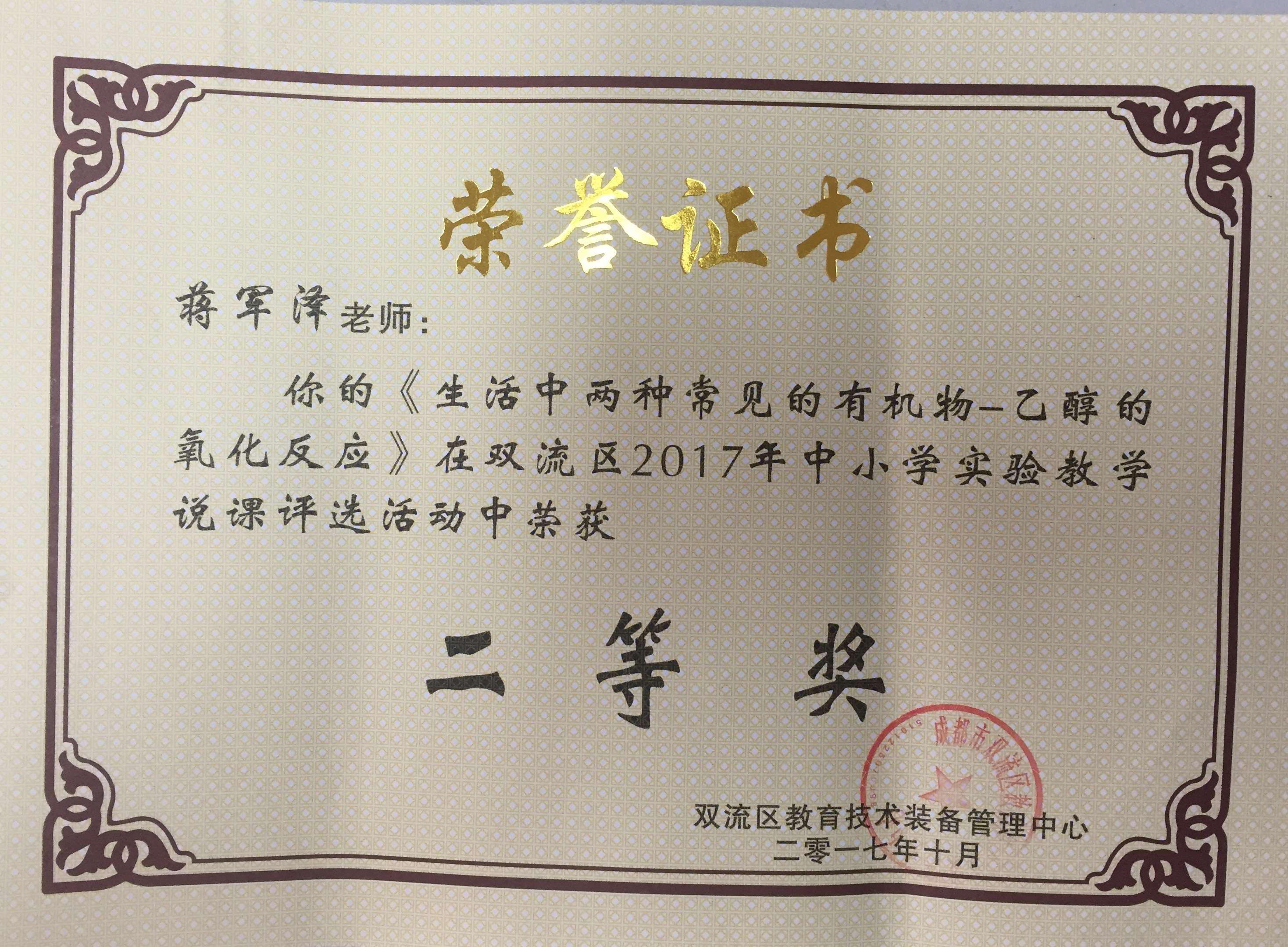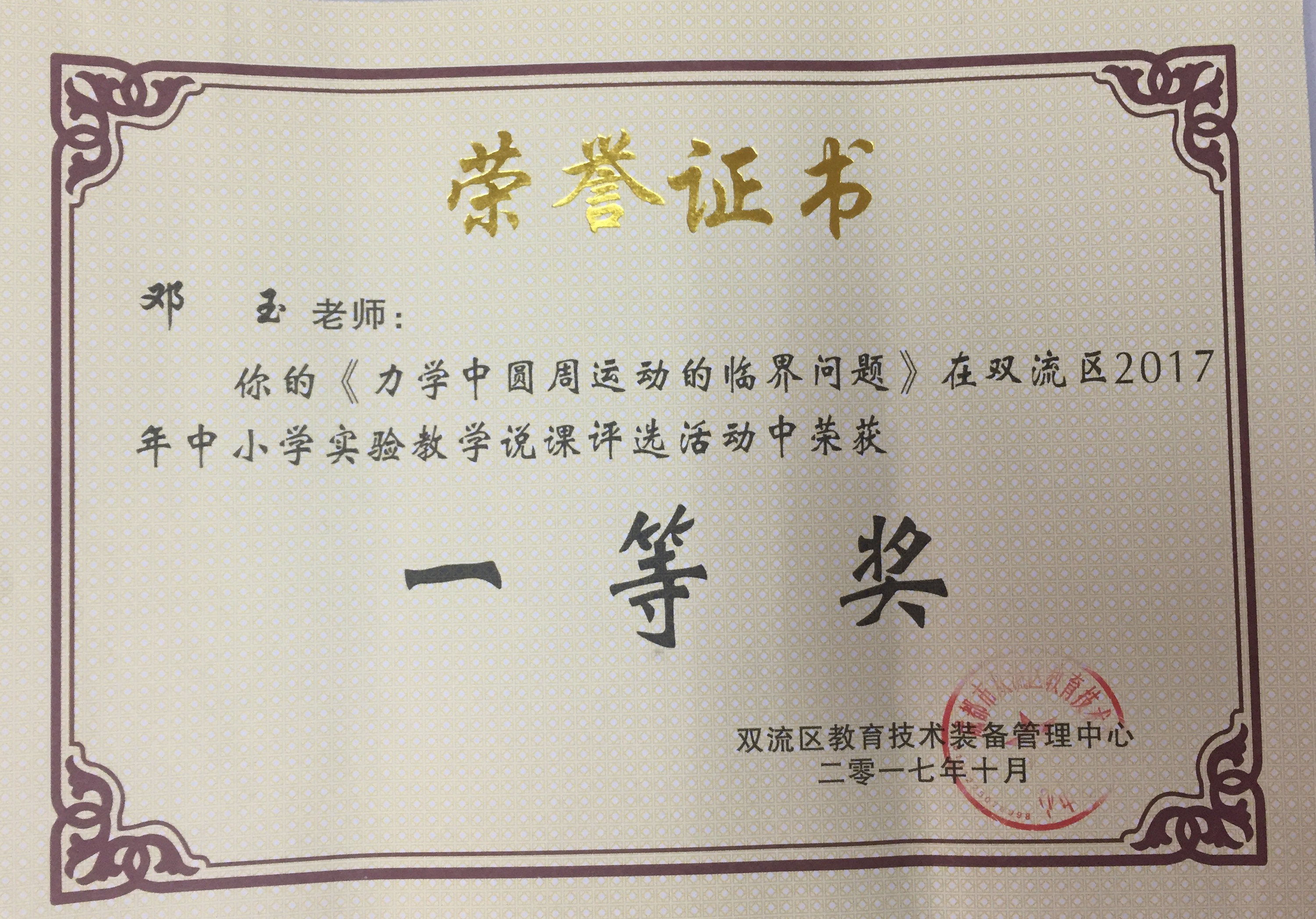 鄧玉老師獲得實(shí)驗(yàn)教學(xué)說(shuō)課一等獎(jiǎng),蔣軍澤老師獲得實(shí)驗(yàn)教學(xué)說(shuō)課二等獎(jiǎng);