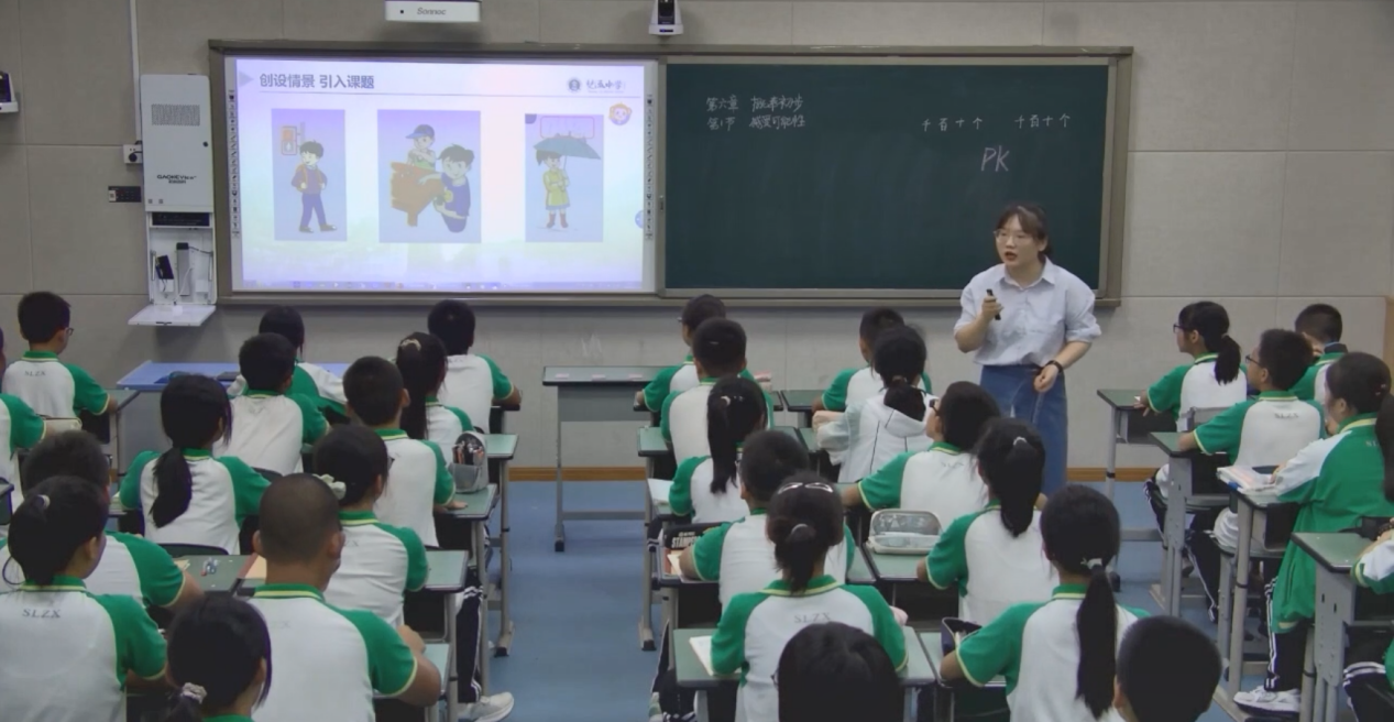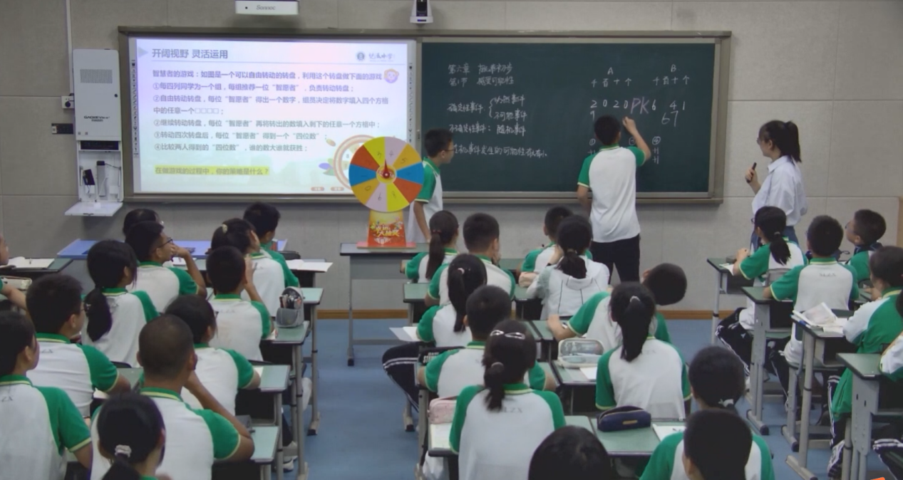 王芝鳳老師執(zhí)教《感受可能性》。任何知識要具有生命力,都必須作為一個“過程”存在于一定的生活場景、問題情境或思想語境中。王老師深刻踐行這一準則,在《感受可能性》這一課的教學中,以概率源于賭博這一契機點展開教學,為同學們設置了多種生活化的活動,讓學生們在活動中學習隨機事件、不可能事件和必然事件,整堂課輕松自然,學生參與度極高,最后以概率在天氣預測、大數(shù)據(jù)分析和疫情防控中有非常重要的應用結束整堂課。這堂課充分體現(xiàn)出數(shù)學來自于生活,也應用于生活。