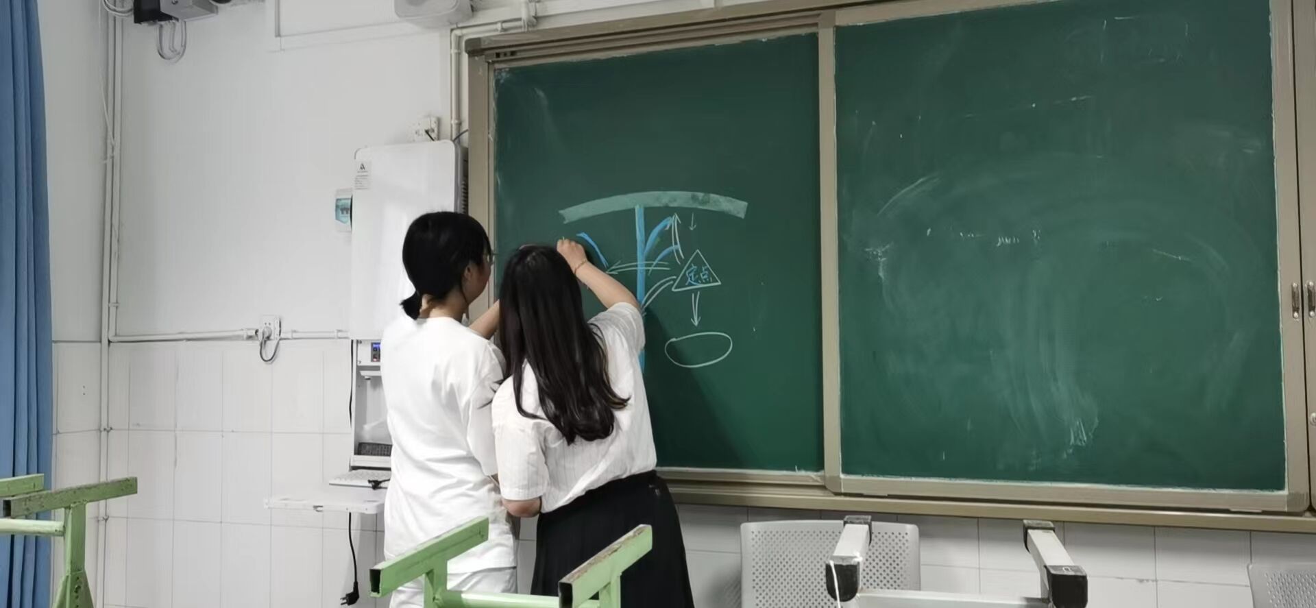 圖4:陳靜老師和汪凱倫老師一起進行板書設計