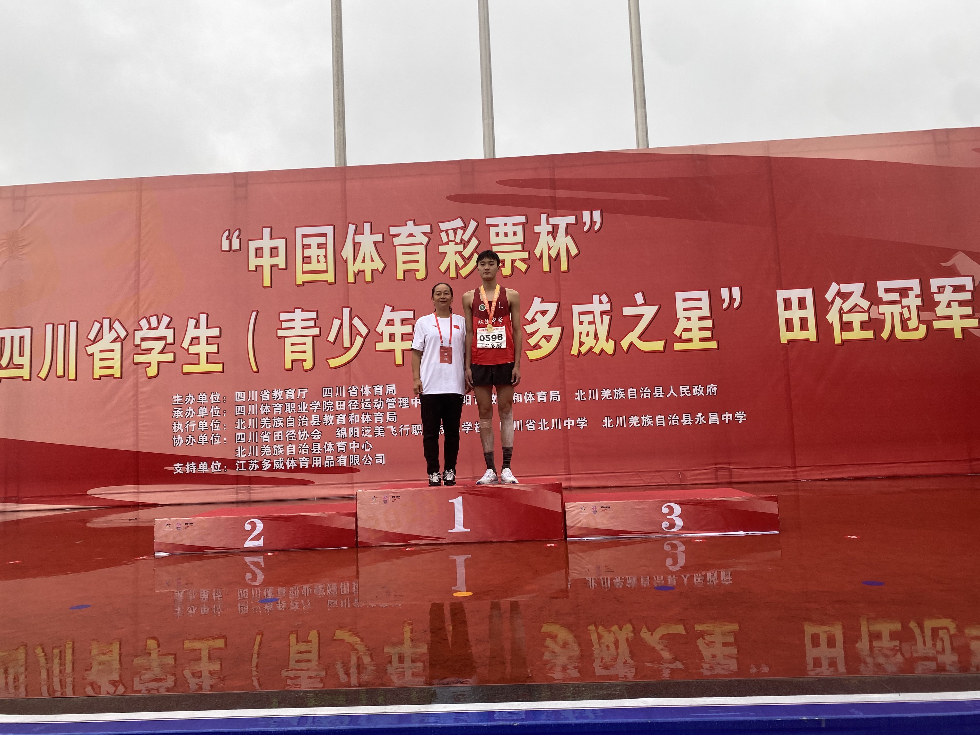 唐老師和跳遠(yuǎn)冠軍王胤灃合影