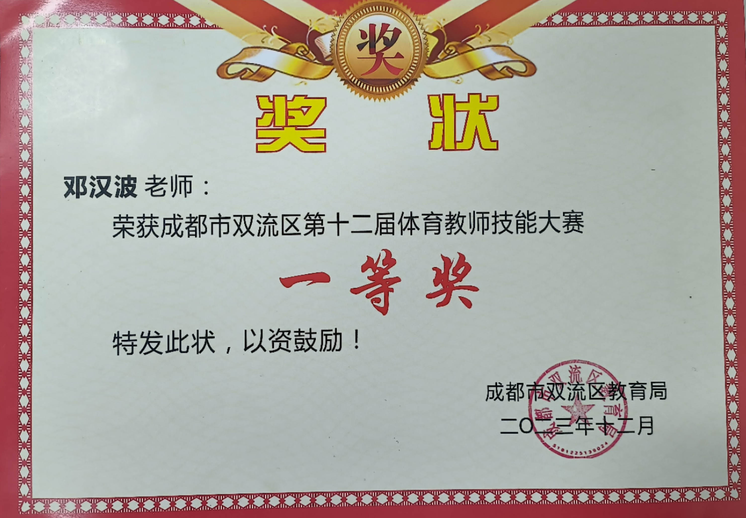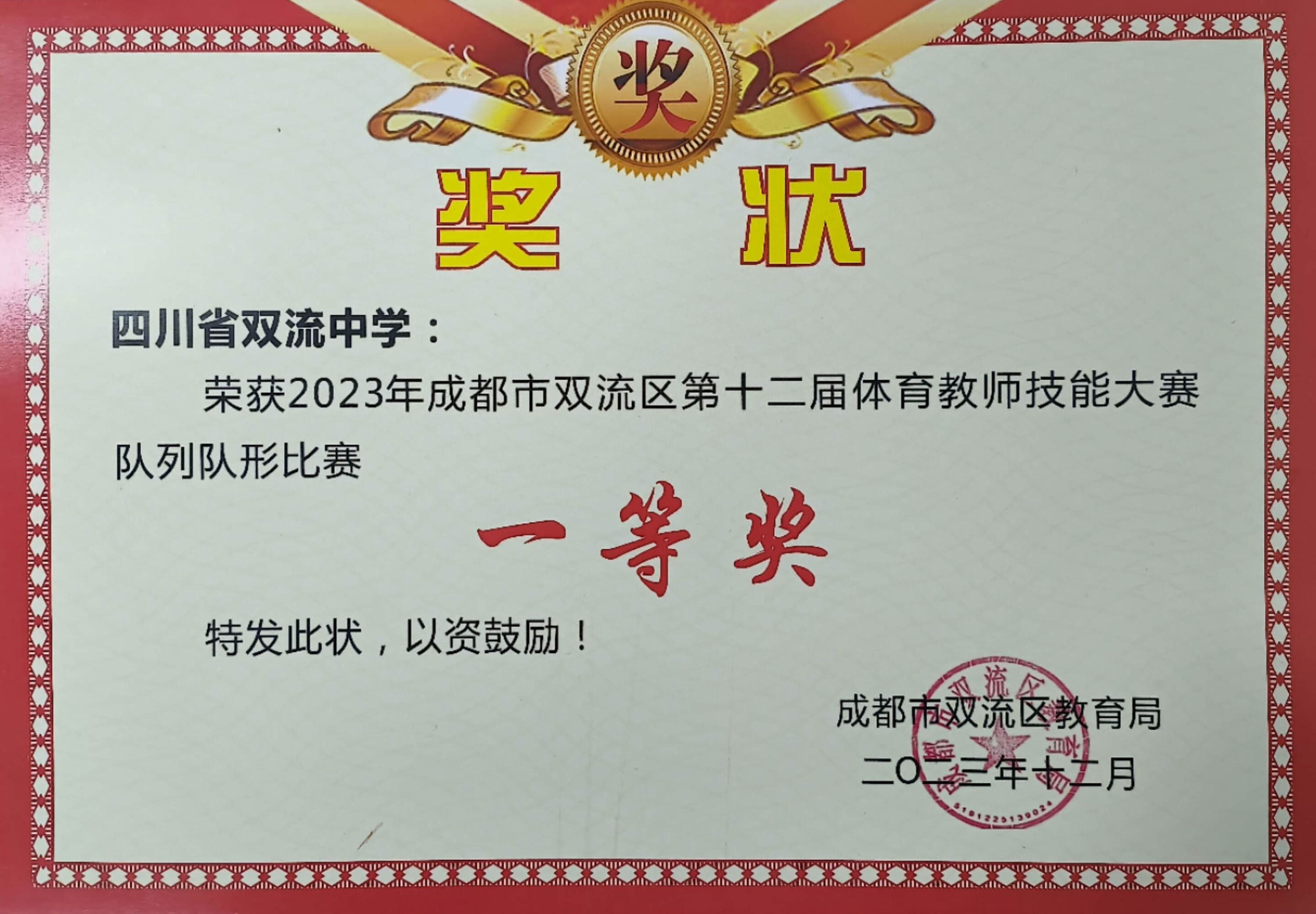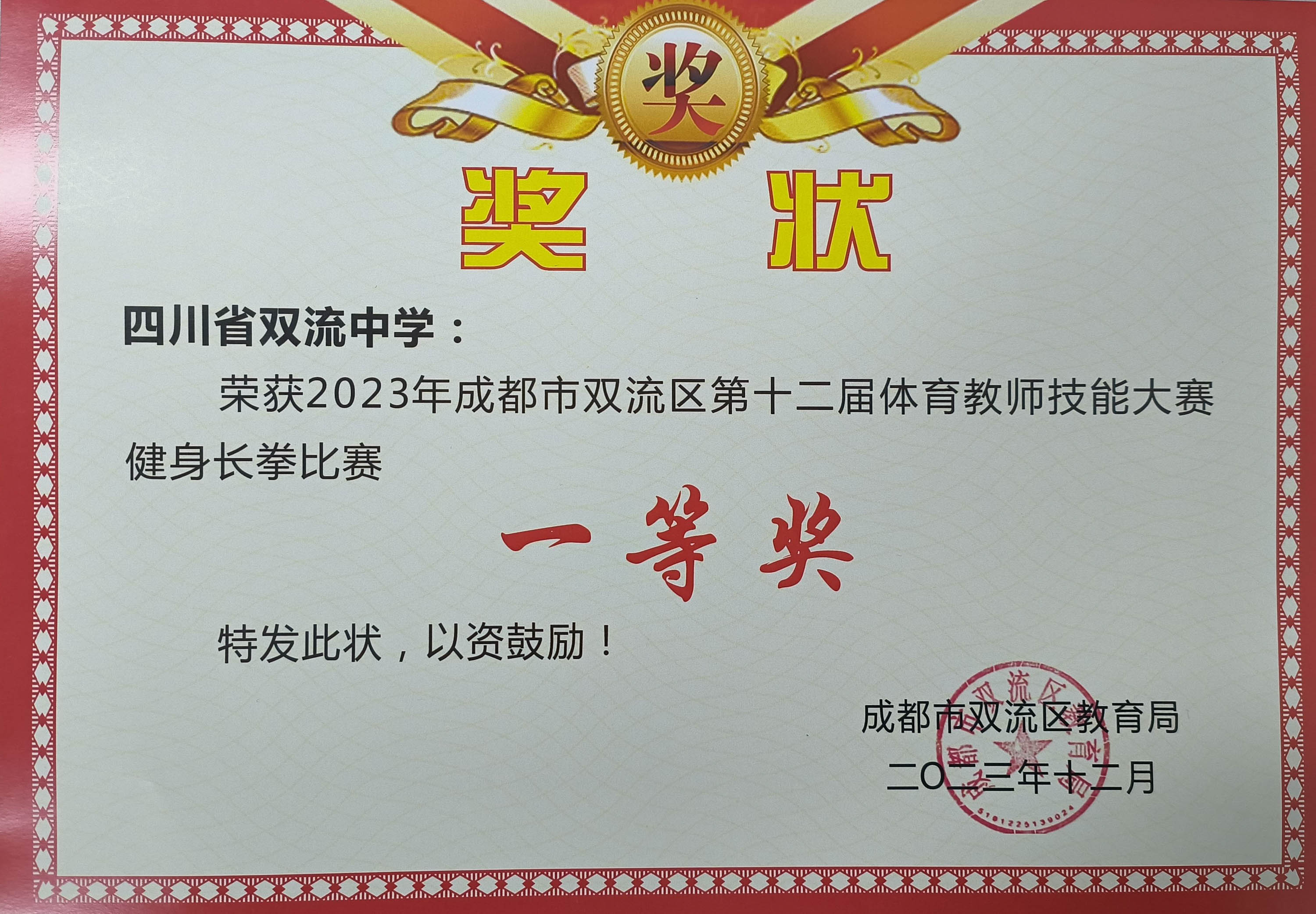 2023年11月9日至10日,雙流區(qū)第十二屆體育教師專業(yè)技能大賽圓滿收官。雙流中學(xué)體育教師代表隊(duì)在全區(qū)近100支參賽隊(duì)中脫穎而出,榮獲成都市雙流區(qū)第十二屆體育教師技能大賽一等獎(jiǎng)的好成績(jī)。