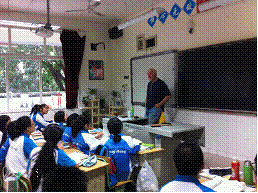 "Hi" , a tall man, with big white face came into the classroom. The teacher tells the students he is our new foreign teacher who named Jim.