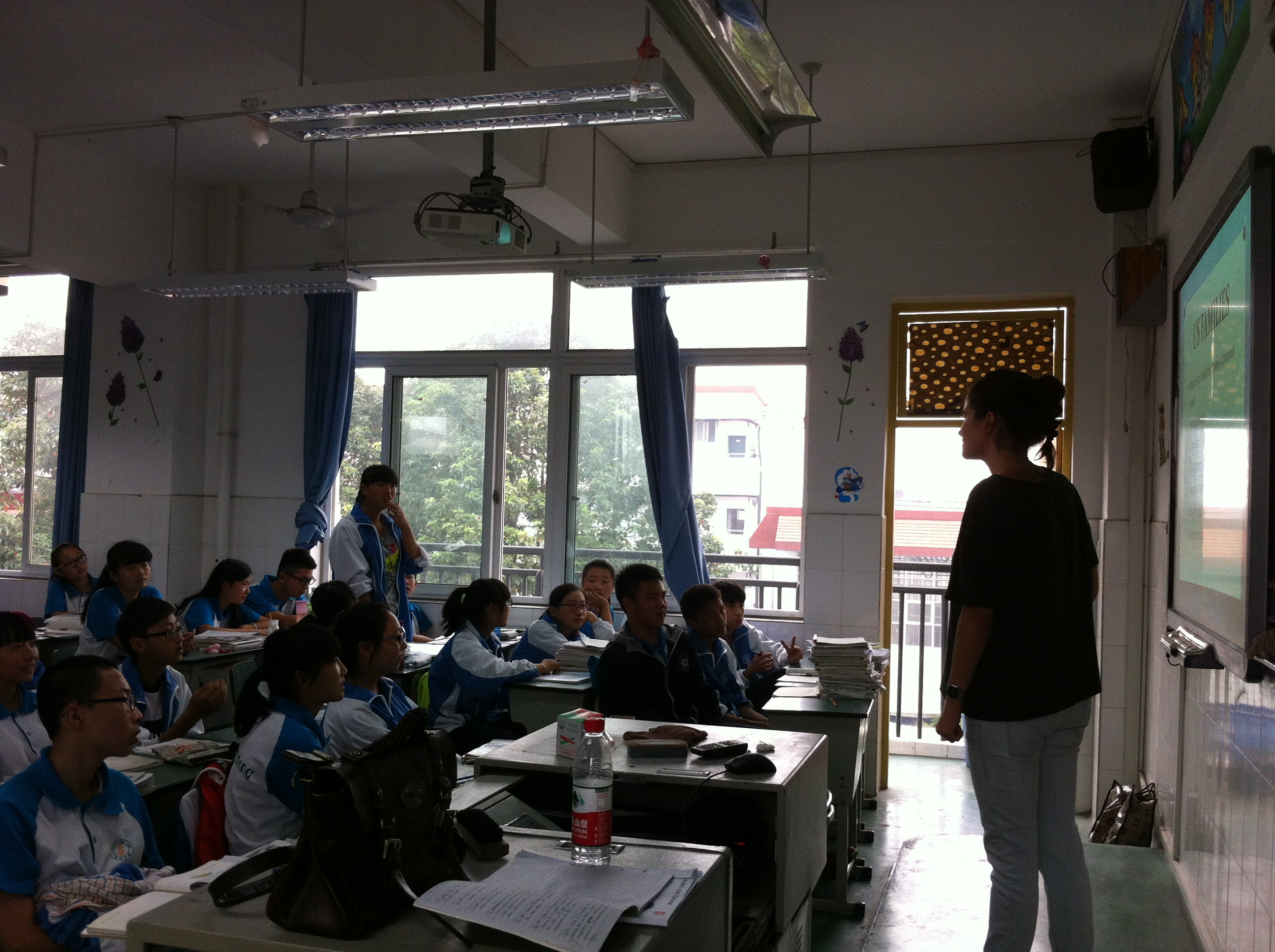 This is our beautiful foreign teacher—Elena. She comes from America. She is very friendly, very warm. When she walked into the classroom, no matter what classes, students began to cheer, began to warmly greet her, we all like her very much. No matter what kind of problems students have , we also like to look for her to discuss about the problem. She always can come up with a good idea for everybody, what’s more, she said she wants to make progress together with all the students.