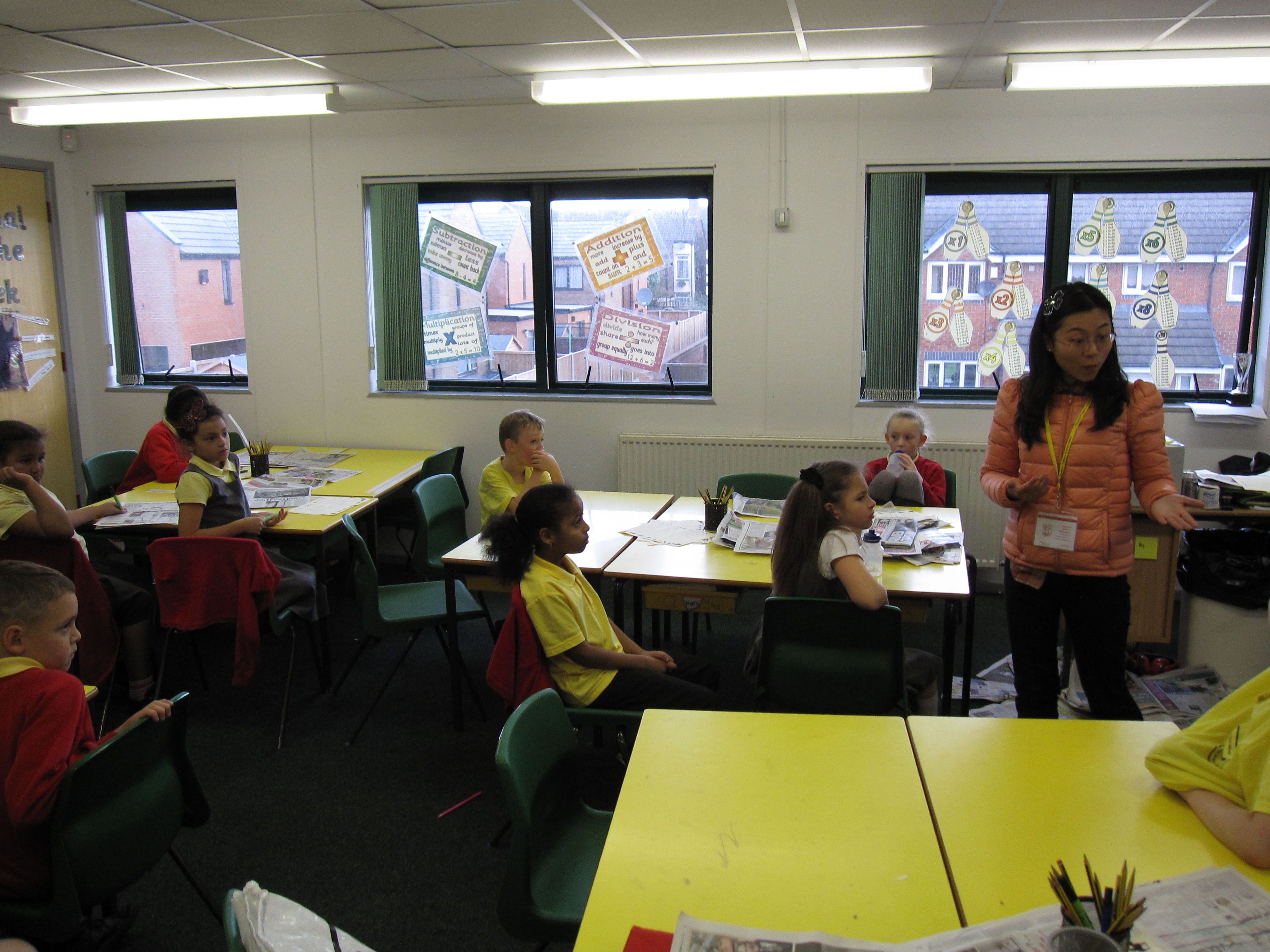 據(jù)王璞老師介紹,她的教學(xué)工作主要分兩部分 :classes and Chinese club. 其中classes部分授課年級(jí)為一,三,四,五年級(jí),主要教授漢語知識(shí),糾正語音語調(diào),每個(gè)年級(jí)授課時(shí)間為半小時(shí)。after school club又分成兩個(gè)時(shí)段,第一段是lunch time club,對(duì)象為一二年級(jí)學(xué)生, 時(shí)間為中午12:30到1點(diǎn),第二段是after school club,對(duì)象為三四五六年級(jí)學(xué)生,時(shí)間為下午3:15到4:15。學(xué)生志愿參加,主要介紹具有中國(guó)特色的傳統(tǒng)文化和風(fēng)土人情。
