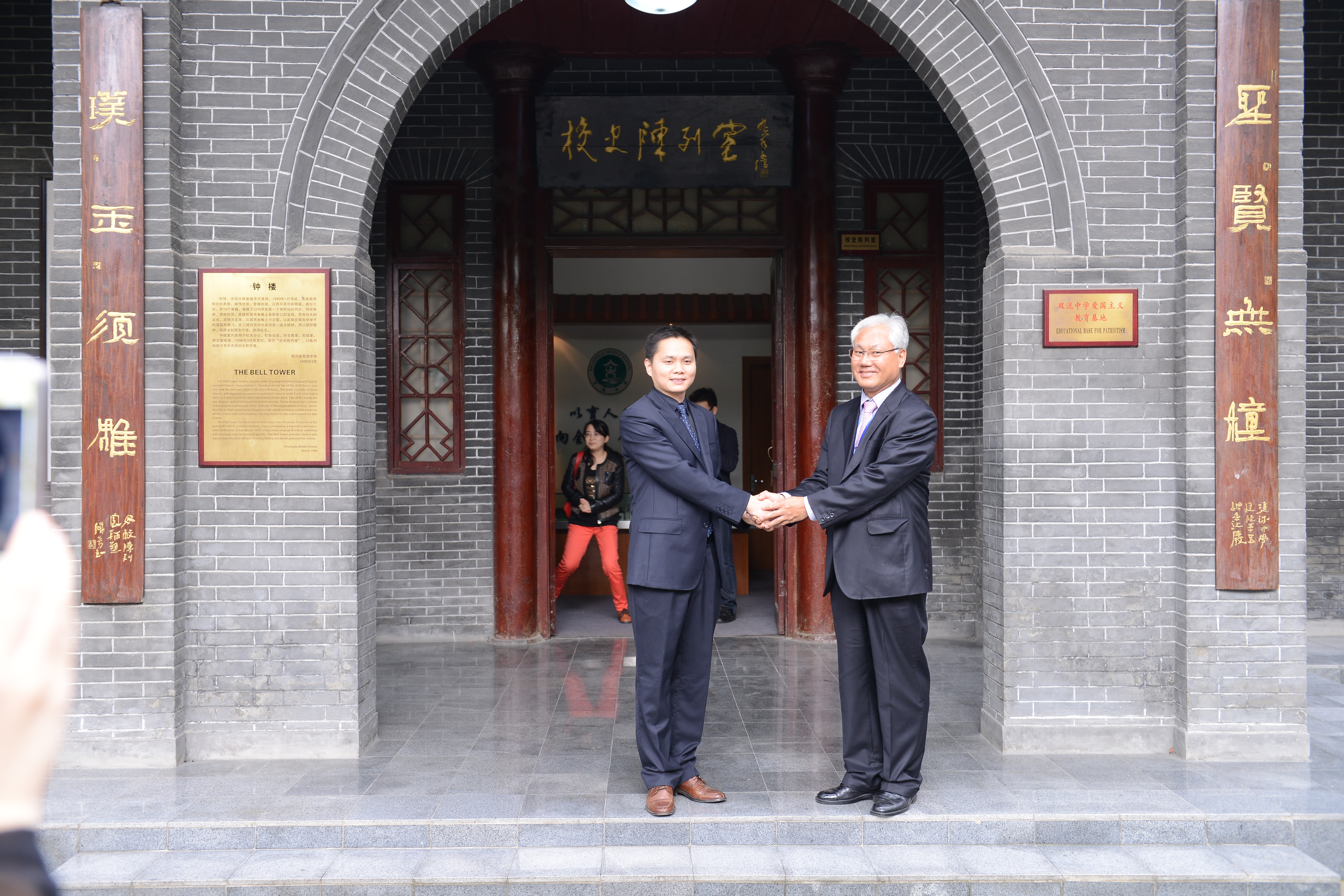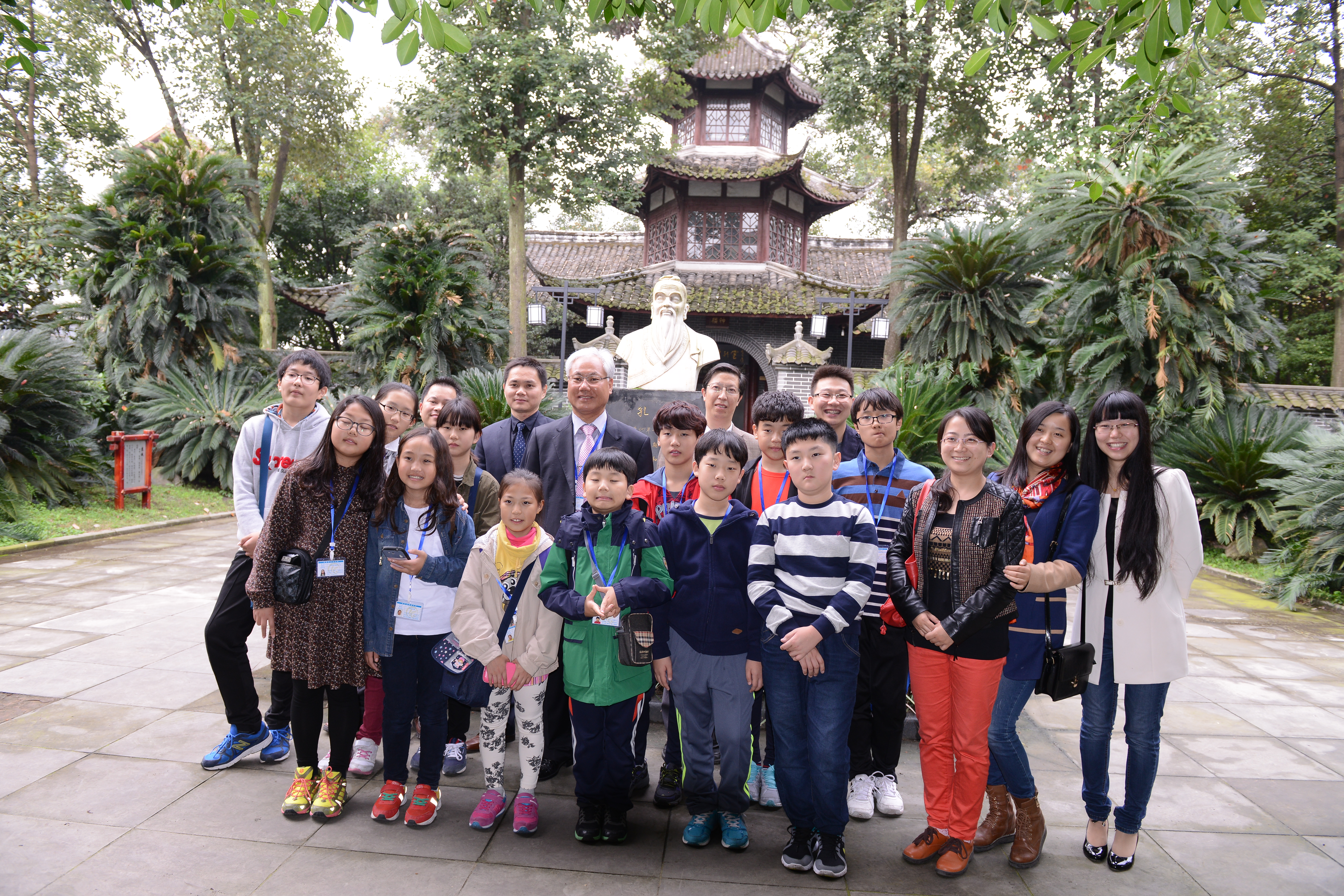隨后,一行人來(lái)到雙流中學(xué)校史陳列室,通過(guò)徐校長(zhǎng)的講解,來(lái)自韓國(guó)的老師和同學(xué)們領(lǐng)略到了雙流中學(xué)悠久的歷史。在學(xué)校的鐘樓下,通過(guò)了解雙中的校史,老師和同學(xué)們感受到了中國(guó)學(xué)校文化的博大精深,紛紛和鐘樓下的孔子像合影留念。