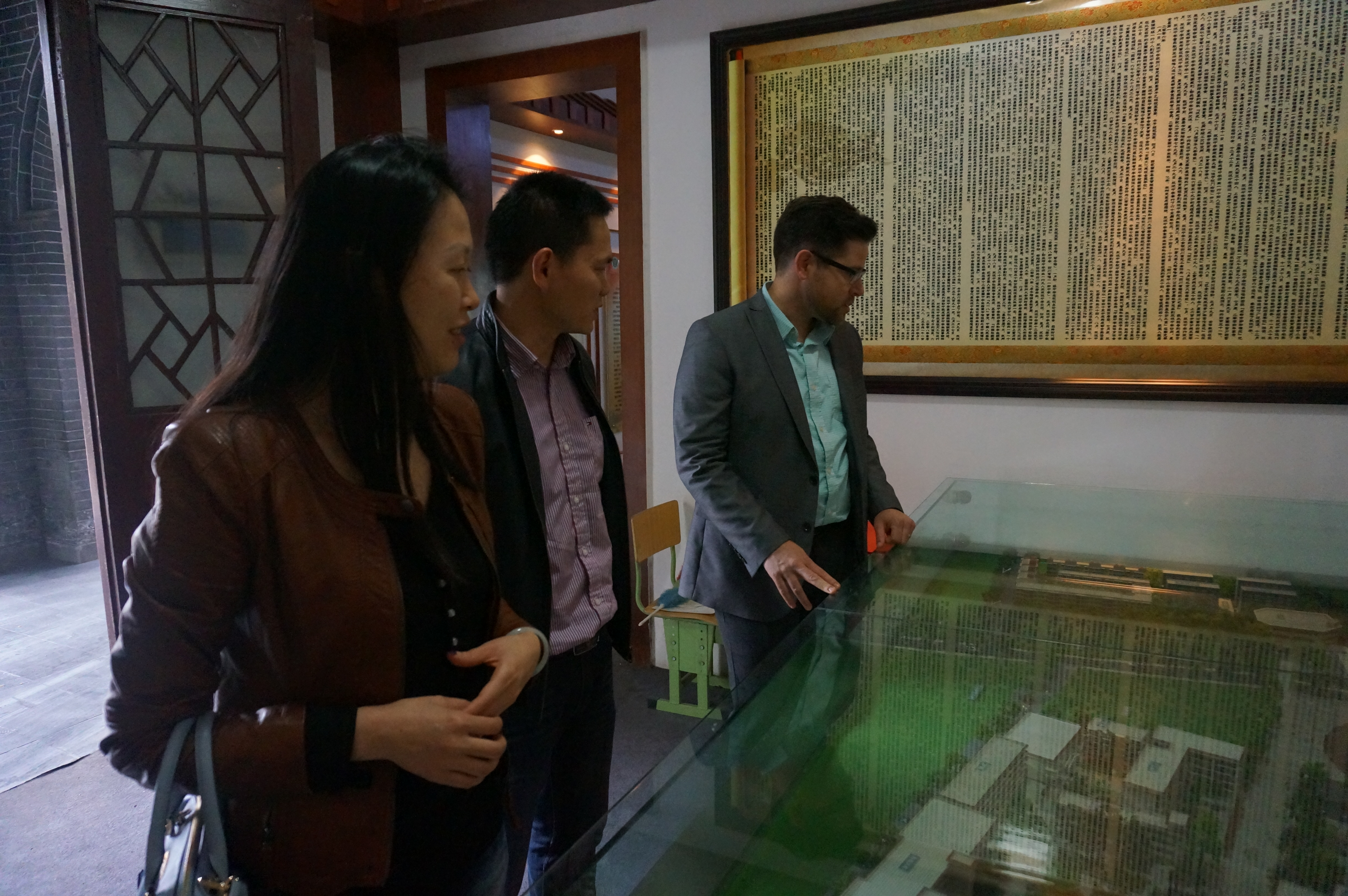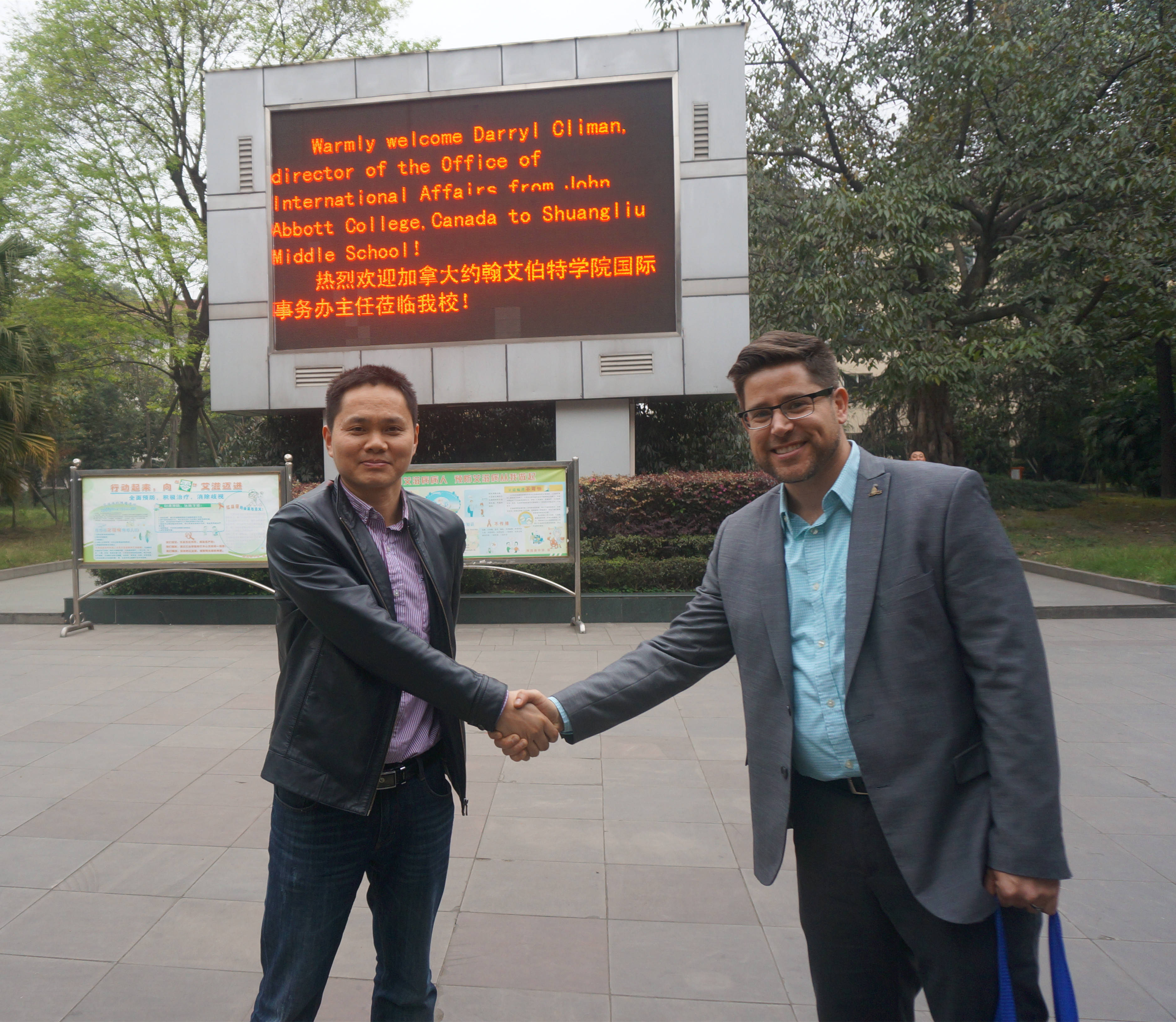 在雙流中學(xué)徐天福副校長和國際部工作人員的陪同下,Darryl Climan主任饒有興趣的參觀了雙流中學(xué)的校園和校史陳列室鐘樓,并在留言薄上寫下了“美麗雙中,名不虛傳”的簽名。