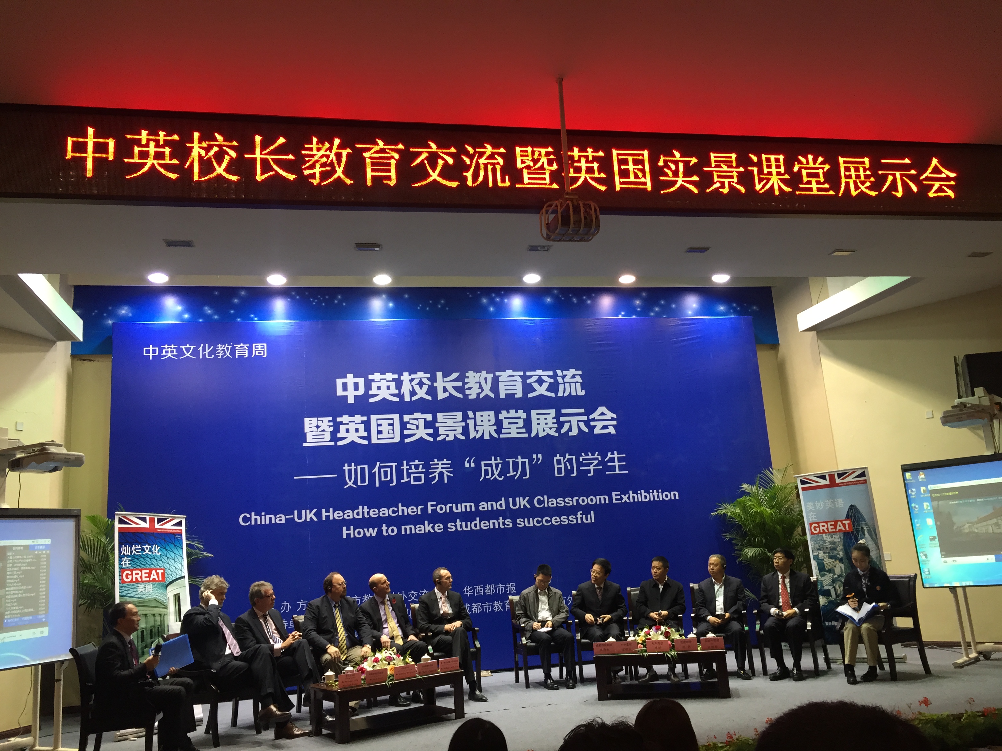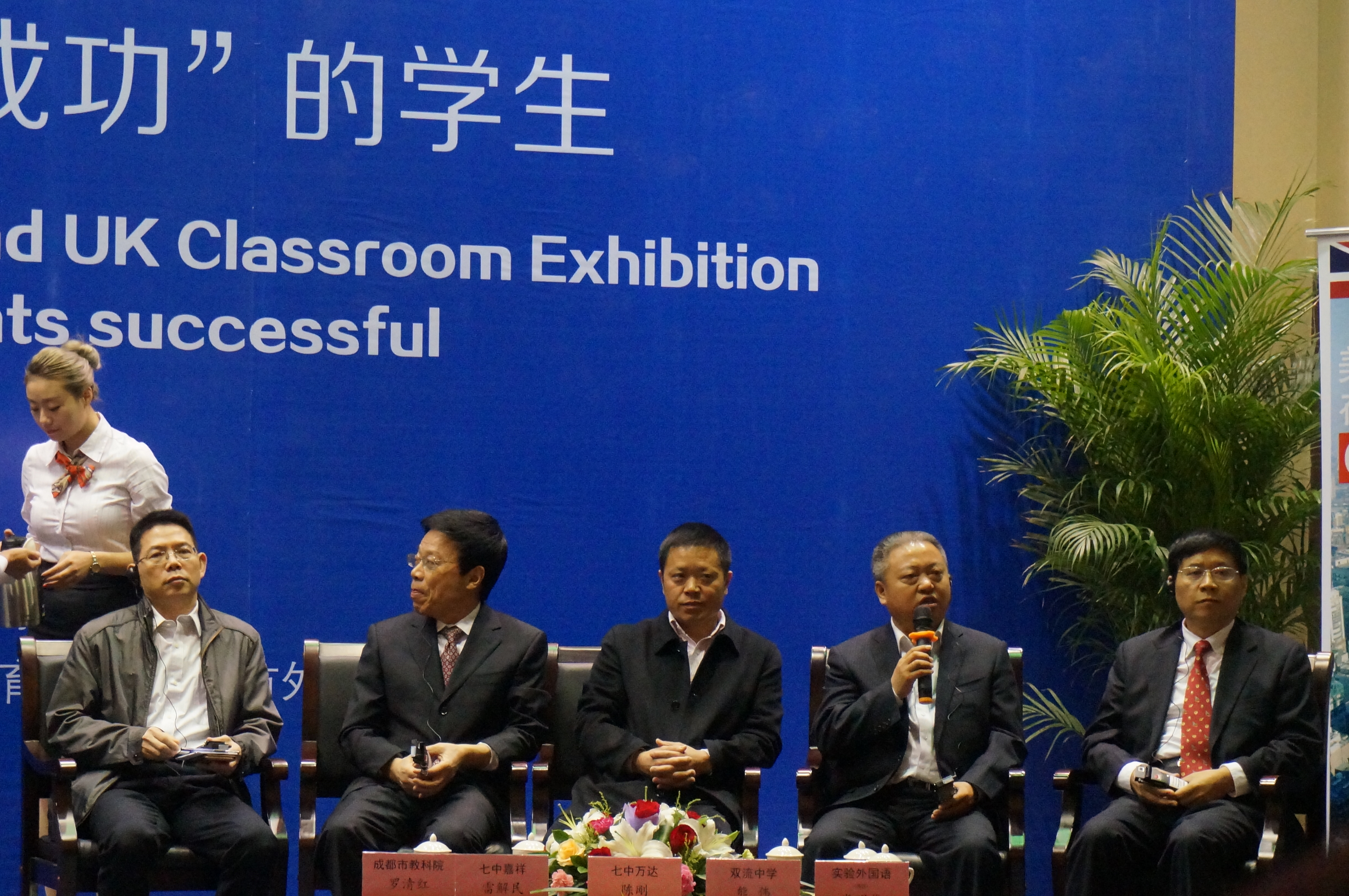 2015年11月2日上午,由成都市教育局聯(lián)合英國總領(lǐng)事館文化教育處共同舉辦的“中英校長教育交流會暨英國實(shí)景課堂展示會”在成都市七中嘉祥外國語學(xué)校隆重舉行。來自英國的五所學(xué)校校長同成都五所中學(xué)校長就中英基礎(chǔ)教育問題展開了深層對話。雙流中學(xué)校長熊偉應(yīng)邀出席了此次會議并作發(fā)言,隨行的還有雙流中學(xué)副校長徐天福,英語教師覃梅。