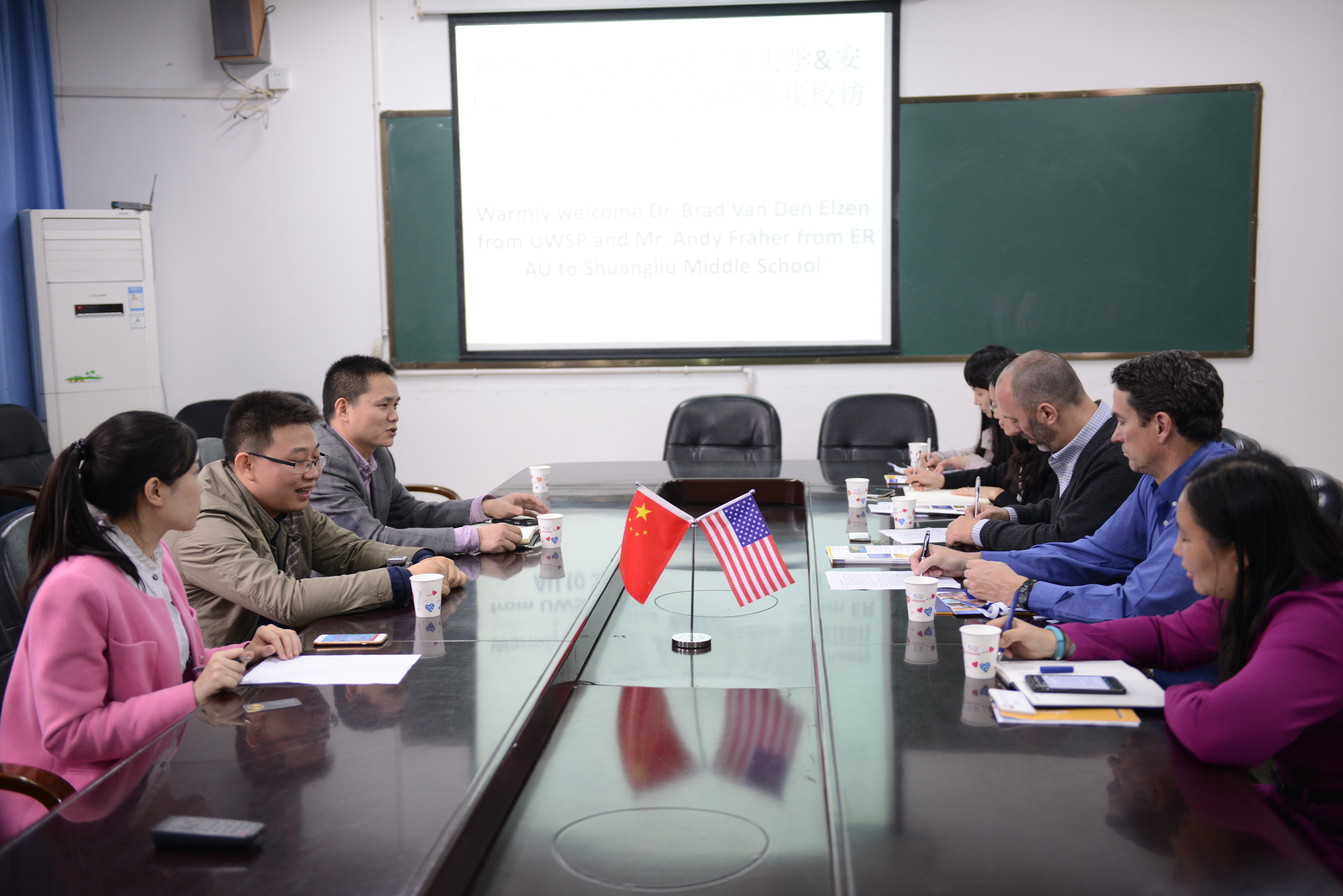 美國威斯康星州立大學(xué)國際項目辦公室主任Dr. Brad Van Den Elzen首先對雙流中學(xué)為此次到訪所做的精心安排表示感謝,并贊揚了雙流中學(xué)美麗的校園及學(xué)校師生廣闊的國際化視野。美國威斯康星州立大學(xué)希望與雙流中學(xué)建立長期合作關(guān)系,并提出可以提供以下便利:邀請雙流中學(xué)一定數(shù)量的老師每年前往UWSP培訓(xùn),并免除培訓(xùn)費用;為雙流中學(xué)的申請學(xué)生提供快速綠色通道及特定數(shù)目的獎學(xué)金;為雙流中學(xué)的員工子弟提供特別獎學(xué)金;不定期來華為雙流中學(xué)學(xué)生提供教育交流講座及現(xiàn)場面試的機會等。