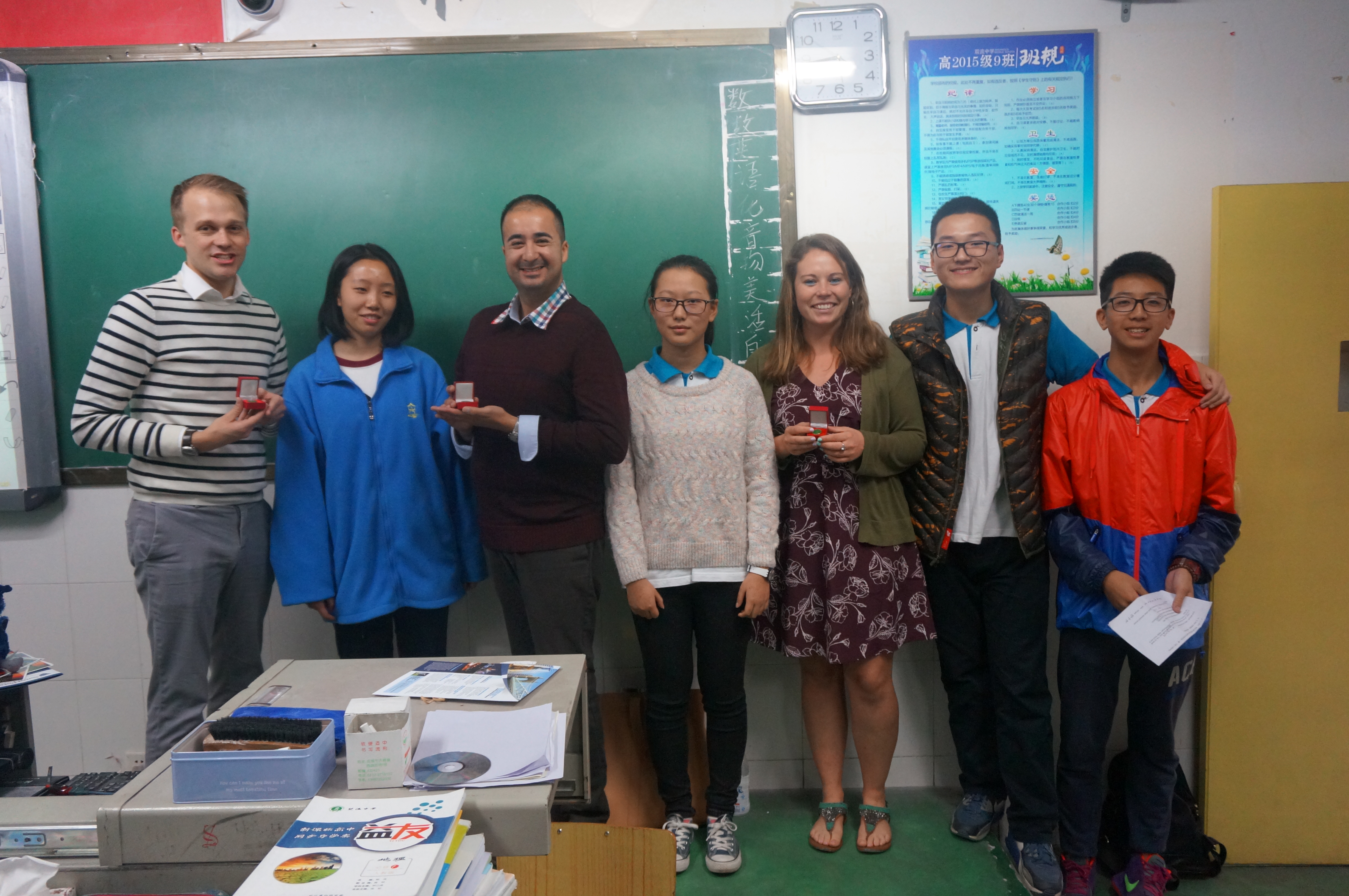 來訪教師們首先來到高一9班,為同學(xué)們帶來了一場(chǎng)以“美國大學(xué)體系及申請(qǐng)流程”為主題的講座。他們也介紹了各自學(xué)校的基本情況、特色優(yōu)勢(shì)和招生政策等相關(guān)內(nèi)容。在隨后的互動(dòng)環(huán)節(jié)中,同學(xué)們就留學(xué)考試、學(xué)費(fèi)、住宿等一系列問題進(jìn)行了詳細(xì)咨詢,并為外籍教師們贈(zèng)送了精美禮物以示感謝,現(xiàn)場(chǎng)氣氛十分活躍。交流過程中,雙中學(xué)子展現(xiàn)出來的良好禮節(jié)和口語能力, 得到了幾位老師的高度認(rèn)可和贊揚(yáng)。