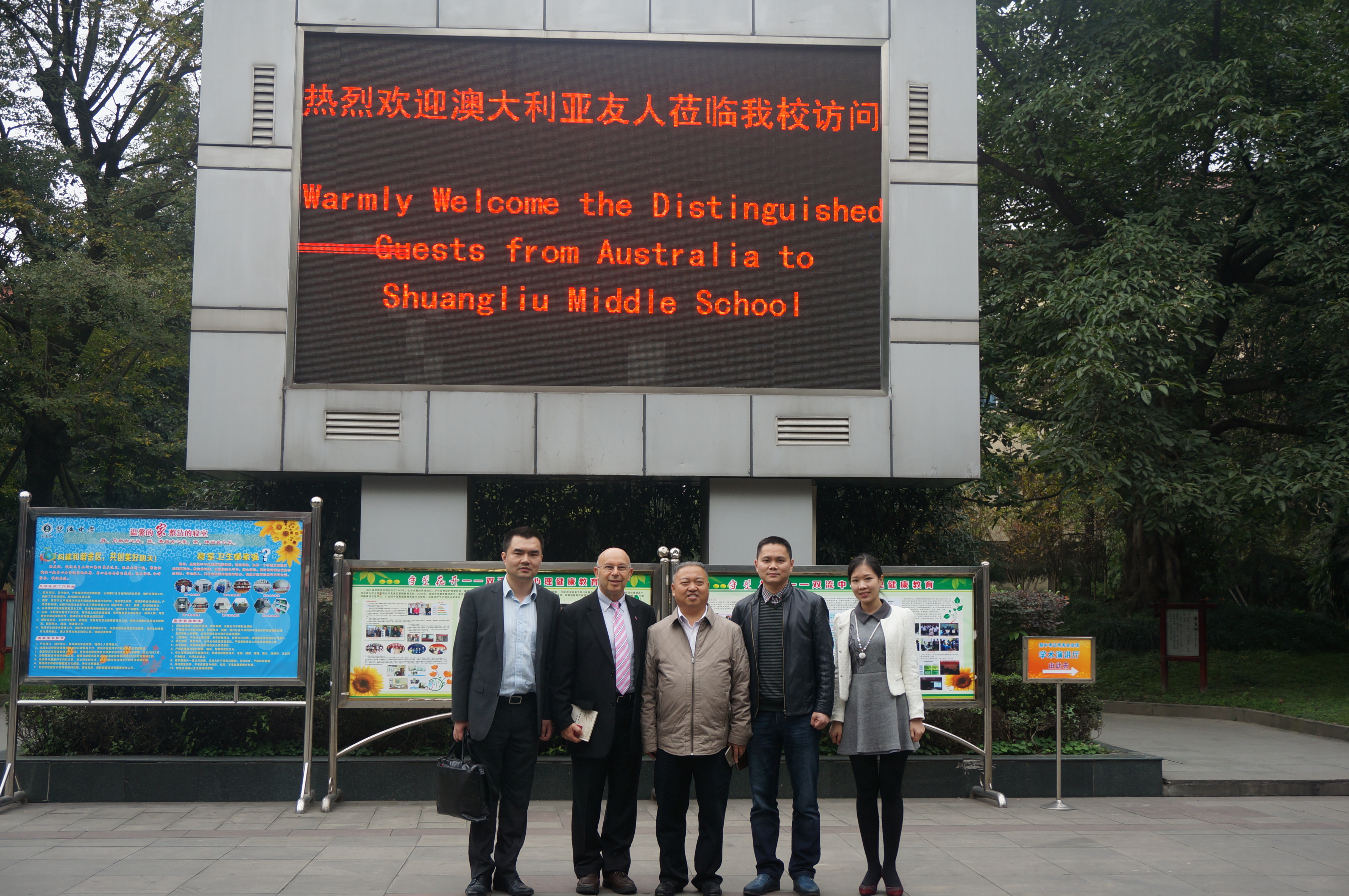 2015年11月17日,澳大利亞中國工商委員會秘書長卡爾杰特先生(Mr.Carl Jetter)、澳大利亞邁思特集團董事長桂翀先生一行蒞臨雙流中學(xué)交流訪問。雙流中學(xué)校長熊偉、副校長徐天福,英語教師覃梅熱情接待了來訪嘉賓并參加交流。