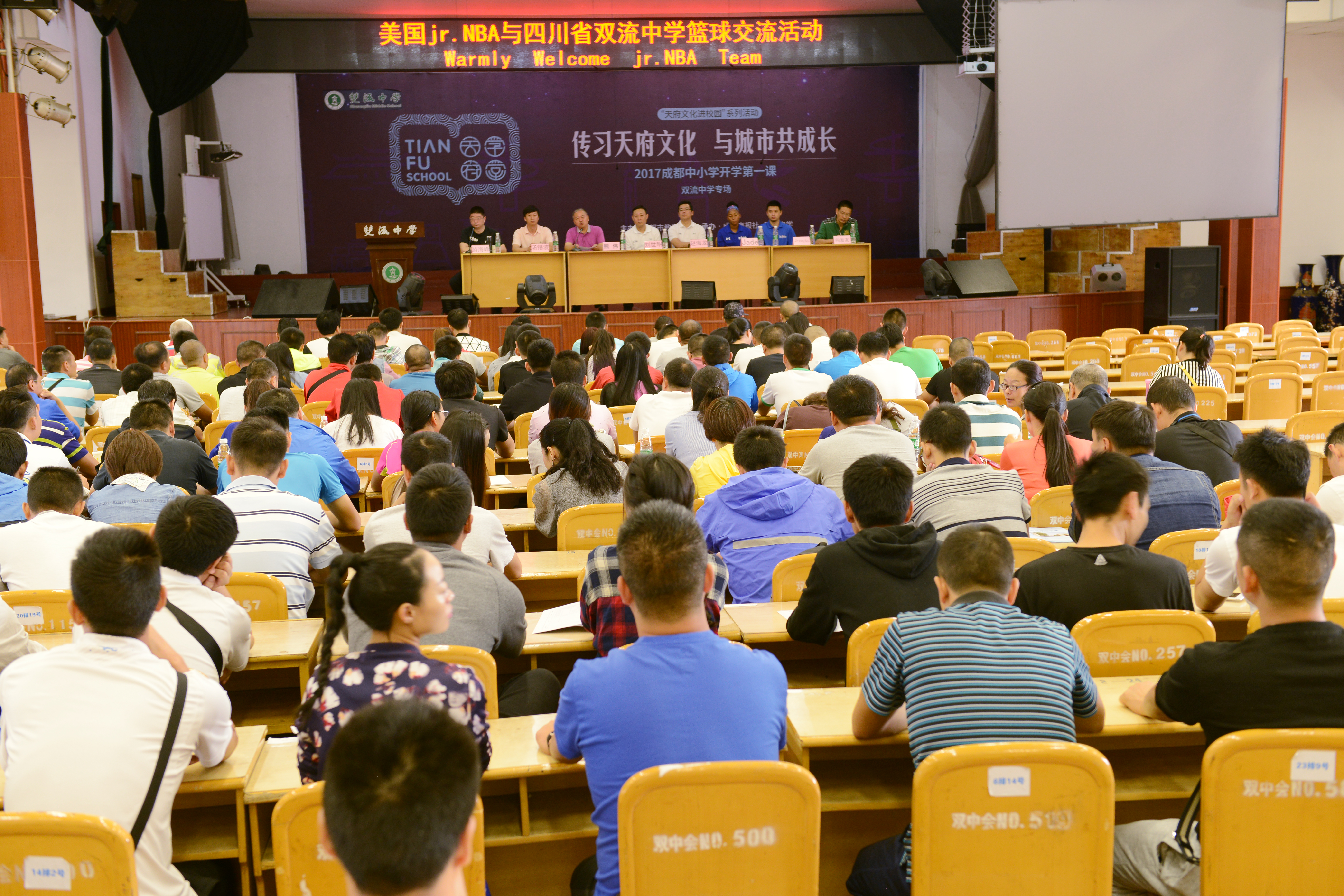 2017年9月28日,美國jr.NBA與四川省雙流中學(xué)籃球交流活動(dòng)在雙流中學(xué)隆重舉行。JR.NBA中國項(xiàng)目總監(jiān)趙龍海,四川省教育廳體衛(wèi)藝處處長劉世明,成都市雙流區(qū)教育局藝體科科長湯錫波,成都市雙流區(qū)研培中心體育教研員游海峰,雙流中學(xué)黨總支書記、校長熊偉,雙流中學(xué)黨總支副書記、工會(huì)主席向發(fā)友協(xié)同楊成林主任、李衛(wèi)東副主任以及雙流區(qū)全體中學(xué)體育教師出席了此次活動(dòng)。