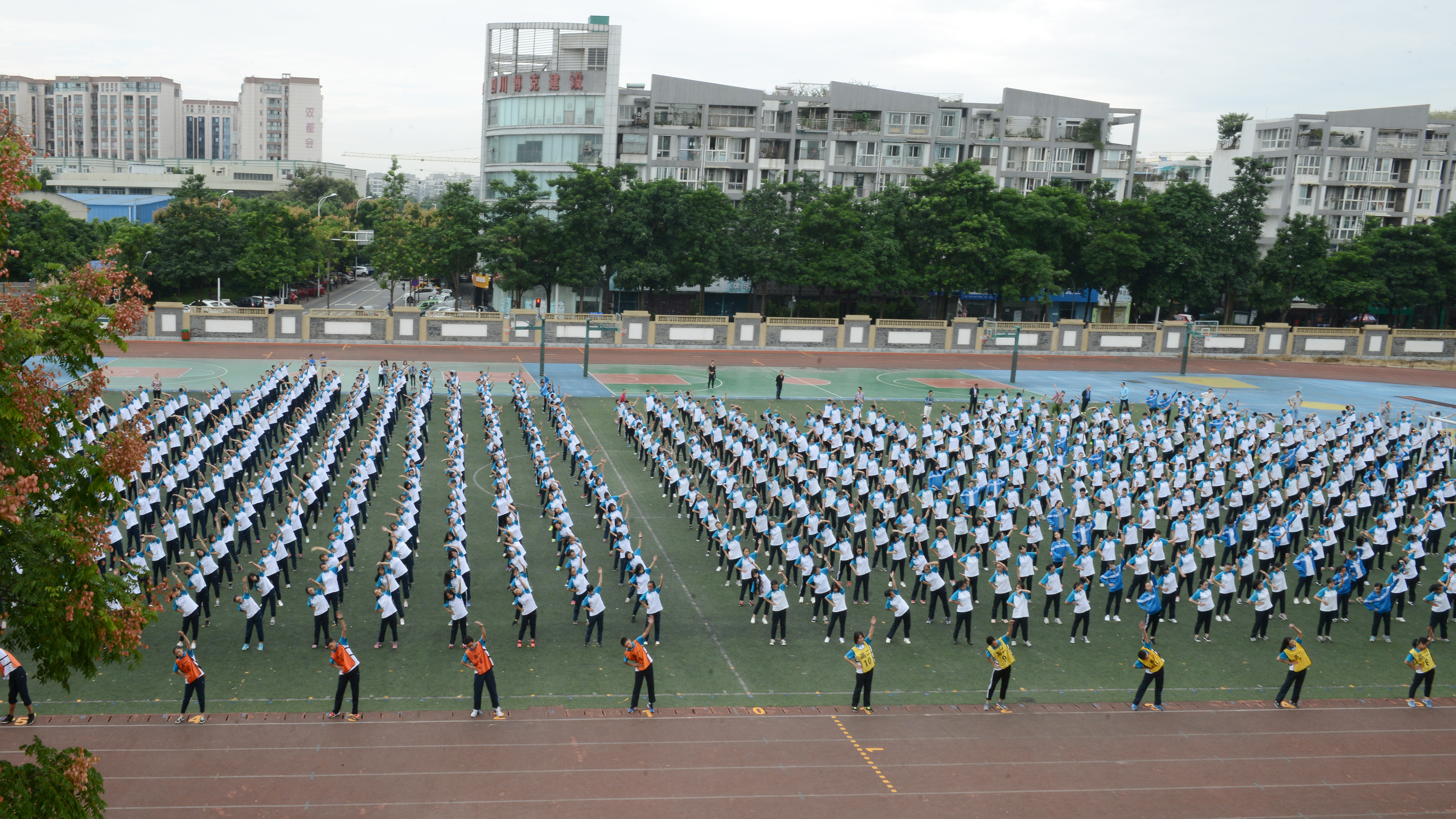 然后jr.NBA項(xiàng)目總監(jiān)趙海龍,劉世明處長一行參觀雙流中學(xué)大課間活動(dòng),緊接著雙流中學(xué)籃球教練凌毓森老師與JR.NBA教練Jade展示籃球示范課。