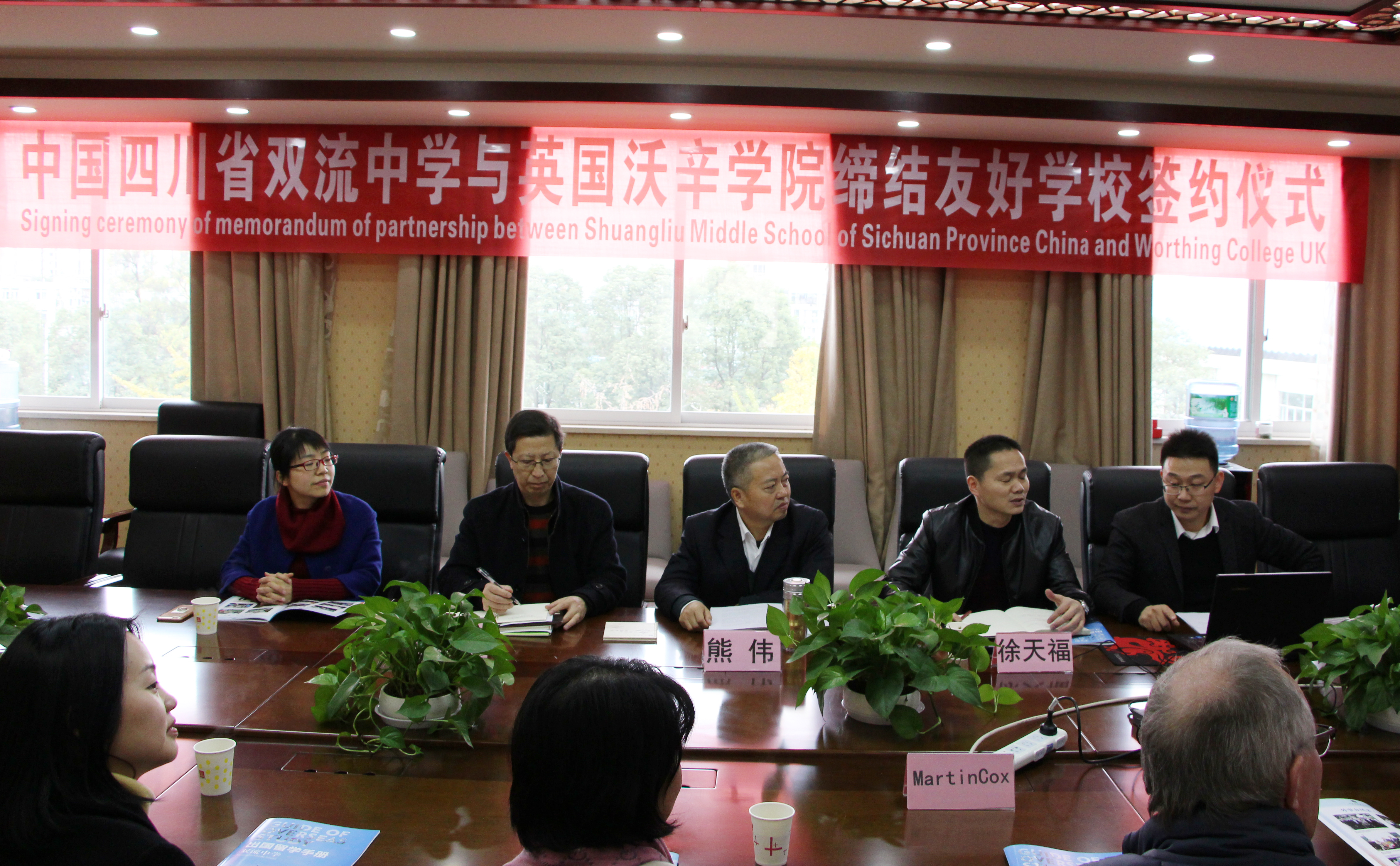 2017年11月23日,伴隨著燦爛的秋陽(yáng),雙流中學(xué)迎來(lái)了英國(guó)沃辛學(xué)院訪問(wèn)團(tuán)。雙流中學(xué)黨總支書記、校長(zhǎng)熊偉偕同副校長(zhǎng)徐天福、辦公室副主任李衛(wèi)東以及部分教師代表熱情地接待了Martin Cox一行,雙方就課程共建、教師培訓(xùn)、交換生項(xiàng)目、跨國(guó)教學(xué)視頻等事宜進(jìn)行了深入交流,并簽署了《中國(guó)四川省雙流中學(xué)與英國(guó)沃辛學(xué)院友好學(xué)校合作備忘錄》。