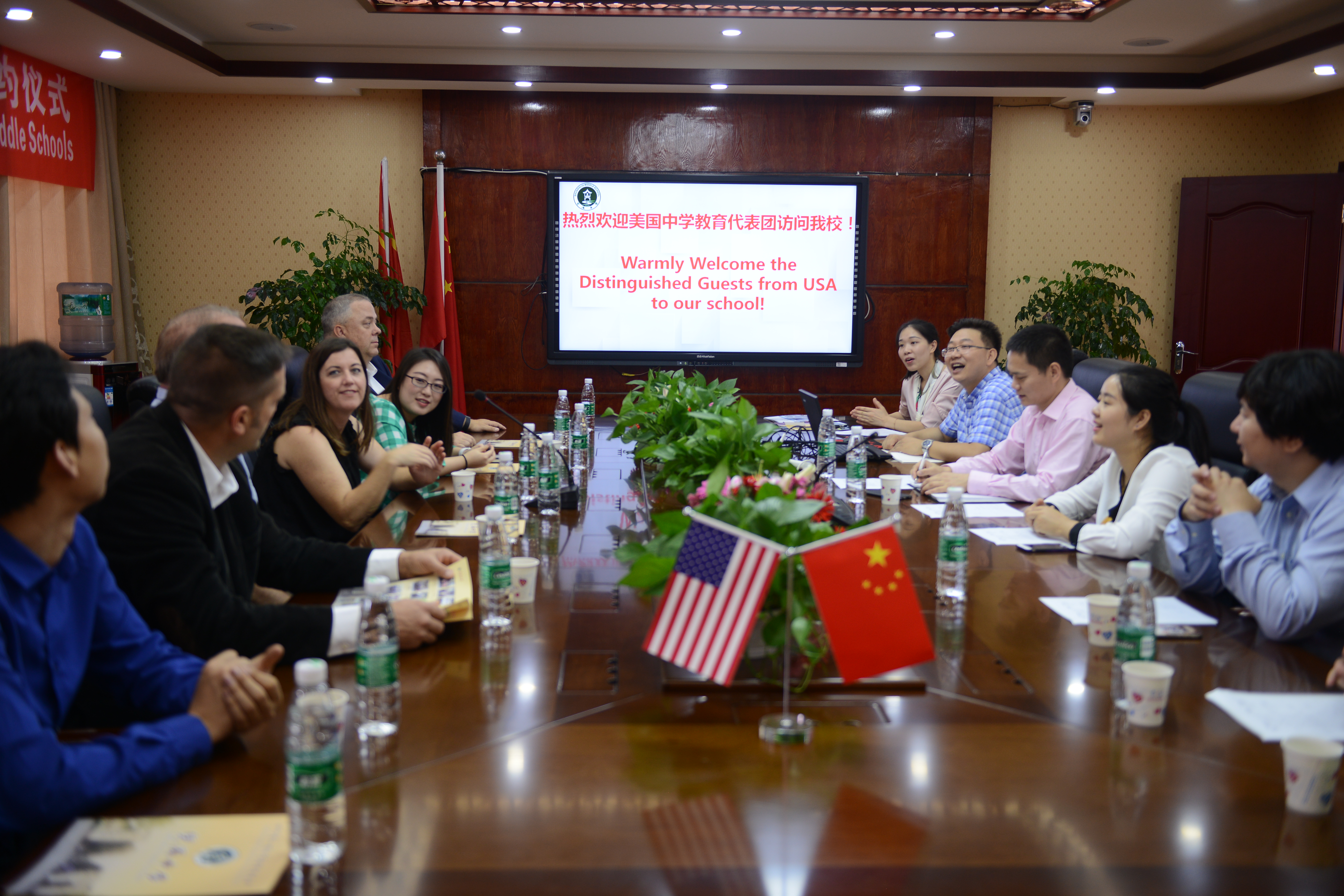 在教育現(xiàn)代化和教育國際化的大背景下,雙流中學本著“開放、融合、求真”的原則,致力于培養(yǎng)具有“平民本色、精英氣質(zhì)、民族情懷、國際視野”的新型人才,將“走出去”與“請進來”相結合,不斷加強與東南亞、歐美等國的教育交往。2018年9月26日,來自美國的中學校長團訪問雙流中學,受到雙流中學副校長徐天福等人的熱情接待。此次來訪的校長分別來自于布蘭切特天主教學校、伊斯特林基督教學院、中央天主教高中、美國英語與文化學院。