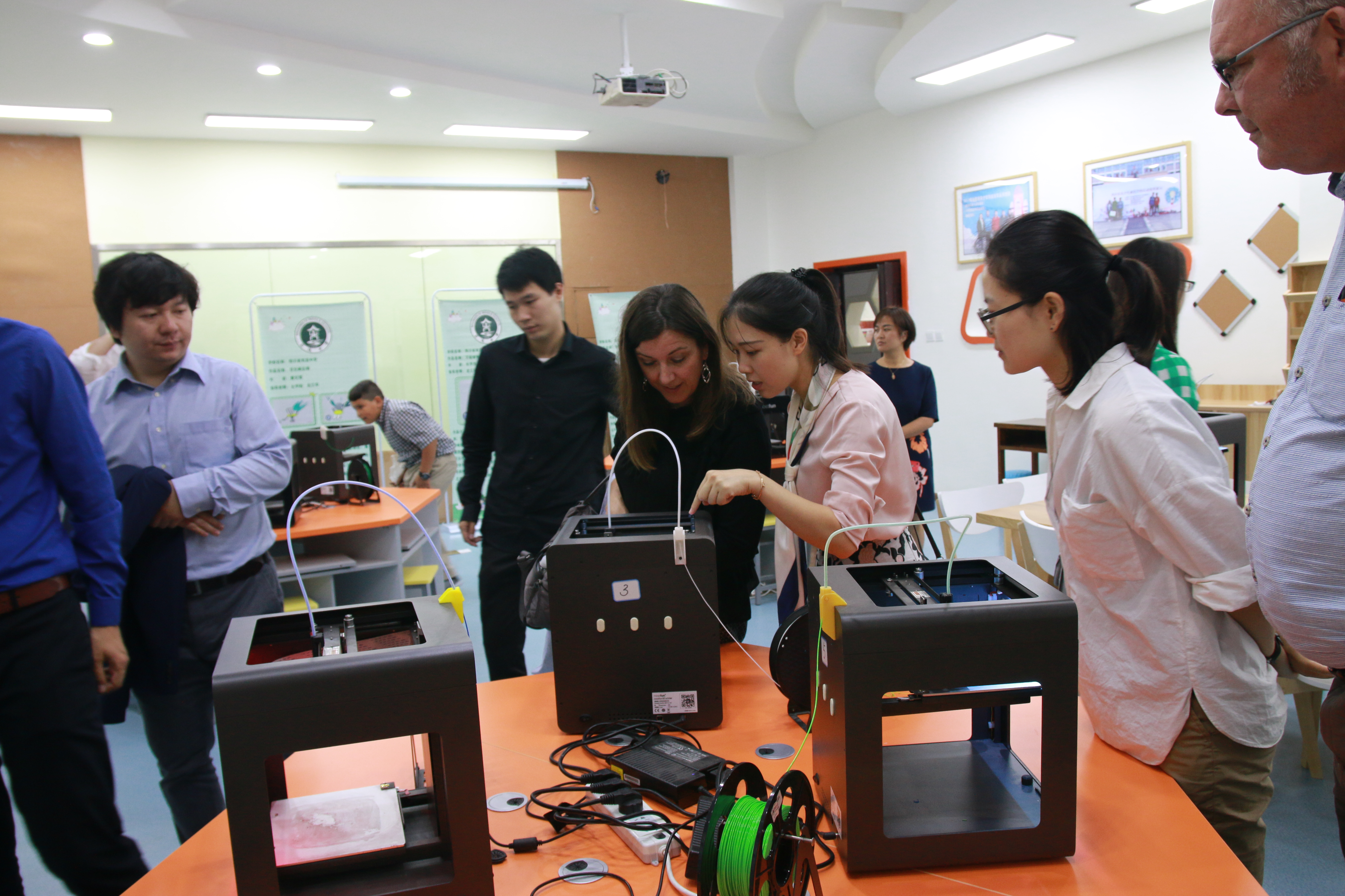 隨后,雙流中學副校長徐天福、學生處副主任張巧菊、校團委副書記汪思杰帶領四位校長參觀了雙流中學3D打印室、Steam教室、機器人教室及心理咨詢中心。