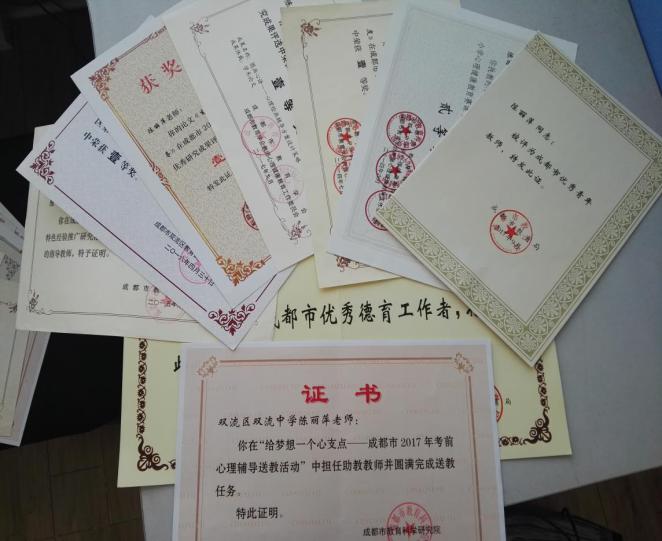國家二級心理咨詢師、中級沙盤游戲治療師、中級職業(yè)生涯規(guī)劃咨詢師、心理援助專員、四川省心理咨詢師協(xié)會會員、四川省心理健康教育地方教材編委、成都市心理學(xué)科骨干教師、成都市優(yōu)秀青年教師、成都市優(yōu)秀德育工作者……這種種的榮譽稱號正是麗萍姐工作成果的部分證明。