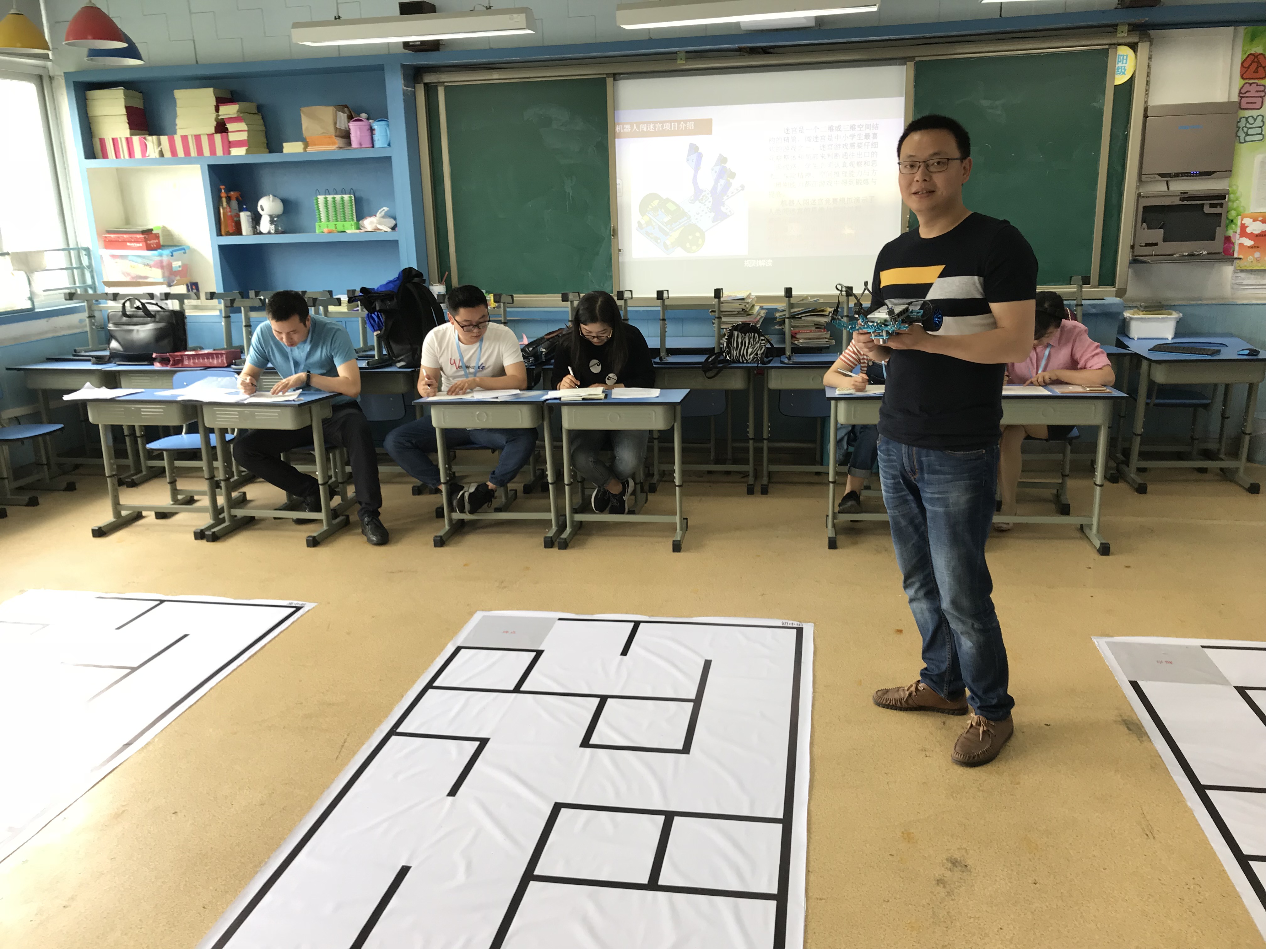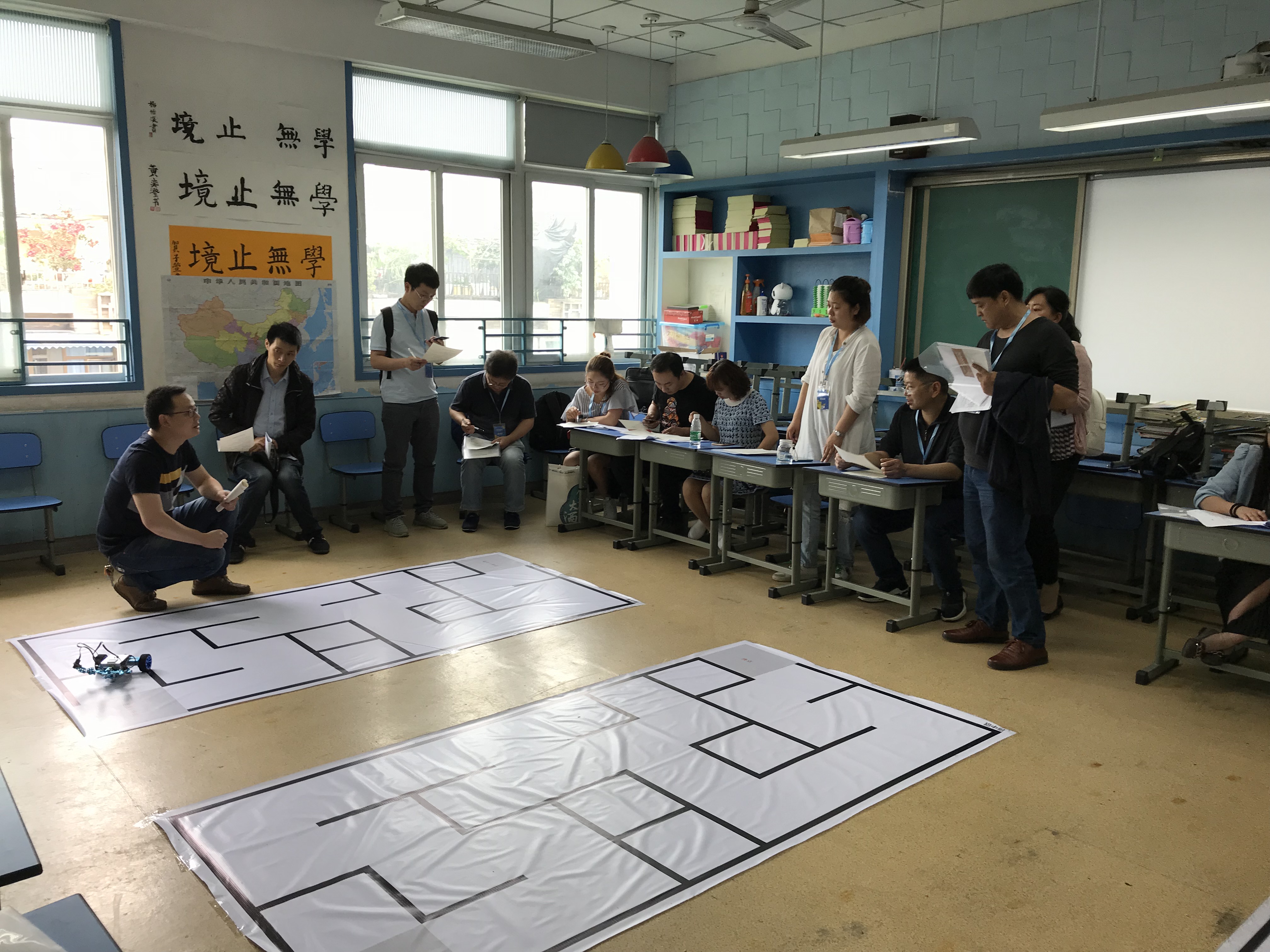 最后,戴榮老師對參培教師進行了筆試考核。同時向參培教師分享了雙流中學(xué)機器人教育開展情況和自己機器人一線教學(xué)輔導(dǎo)的經(jīng)驗,并介紹了雙流中學(xué)STEAM創(chuàng)客教育的開展情況。