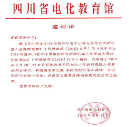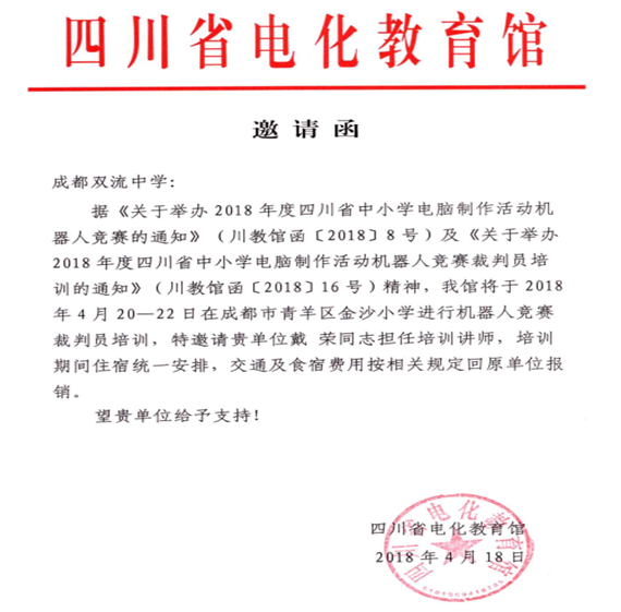 雙流中學(xué)信息中心戴榮老師受四川省電教館邀請,擔(dān)任了此次培訓(xùn)的培訓(xùn)講師,負責(zé)機器人闖迷宮競賽項目的裁判員培訓(xùn),圓滿完成了此項目對50余名參培教師的培訓(xùn)考核。