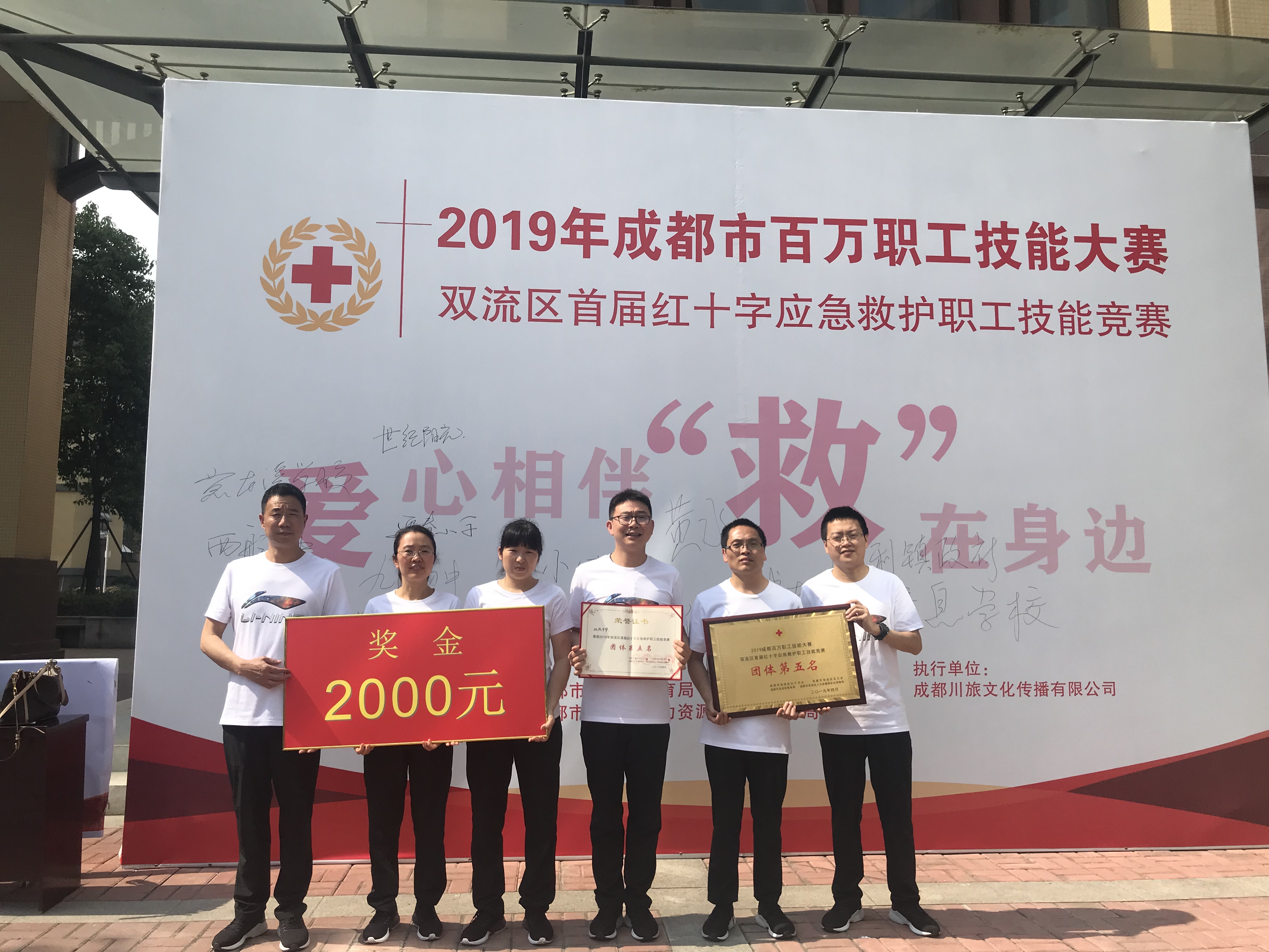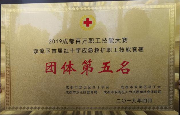 2019年4月23日,經(jīng)過激烈角逐,雙流中學(xué)代表隊(duì)在“成都百萬職工技能大賽暨雙流‘弘揚(yáng)工匠精神 打造航空經(jīng)濟(jì)之都’首屆紅十字應(yīng)急救護(hù)職工技能競賽”中脫穎而出,成功殺入決賽,并最終在六十余支參賽隊(duì)伍中獲得團(tuán)體第五名的優(yōu)異成績。