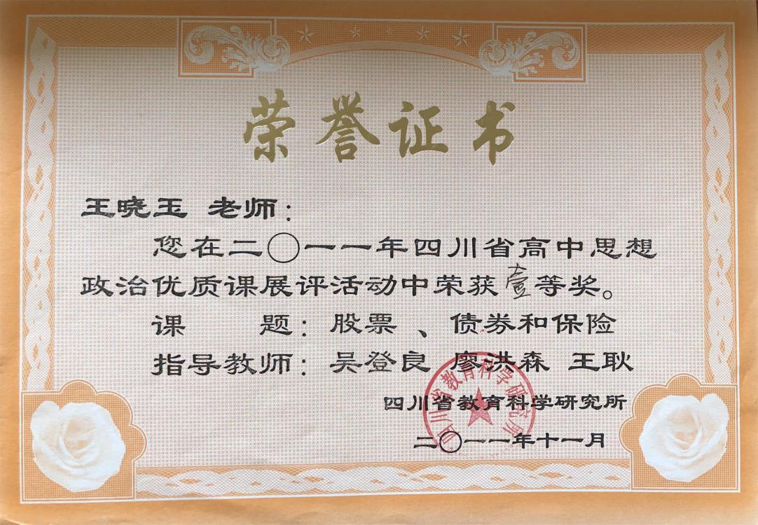 如今,在學校和政府的培養(yǎng)下,我已成為雙流中學高級教師,成都市優(yōu)秀教師,成都市高中政治中心組成員,雙流區(qū)教育系統(tǒng)巾幗建功崗位女標兵,以及雙流區(qū)第十三屆區(qū)委委員。從教21年,我積累了扎實、系統(tǒng)的教育專業(yè)知識和技能,具有較強的教學和科研能力,曾參加四川省高中政治課堂教學比賽榮獲“一等獎”,教學設計《股票、債券和保險》曾榮獲教育部“一等獎”,同時,我在各級刊物上發(fā)表(或獲獎)論文、科研課題等共計20余篇,其中國家級核心刊物7篇。