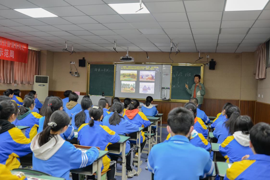 三月十六日下午第四節(jié),雙流中學(xué)美術(shù)教師程軍安老師積極參與學(xué)校的“名師獻課”活動,給高2019級.6班的同學(xué)帶來了一堂“繪畫的色彩”的饕餮盛宴。程老師用多媒體課件展示的方式,引出了光的作用,闡釋了光的來源、影響光的條件,從而解答了色彩的屬性、色彩對人的心理感受,解釋了不同人群對色彩的駕馭水平。