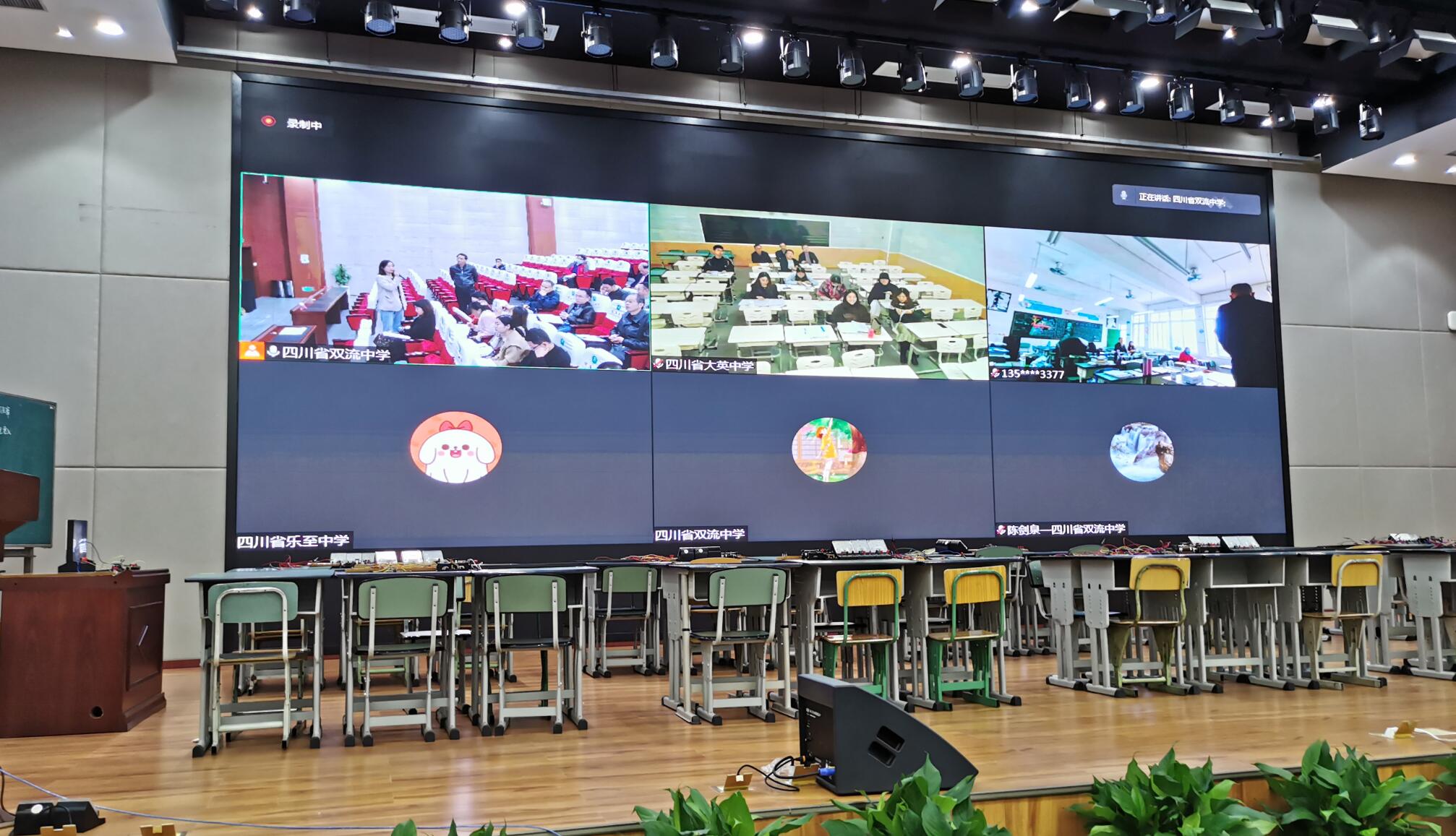 丹桂飄香,芙蓉興盛,2021年10月28日上午,雙流中學(xué)成功舉行149聯(lián)盟語(yǔ)文聯(lián)動(dòng)教研暨陳劍泉語(yǔ)文工作室學(xué)術(shù)研討活動(dòng)。四川師范大學(xué)李華平教授、陳劍泉工作室成員、雙流中學(xué)部分行政以及全體語(yǔ)文教師參與了這次活動(dòng)。除此之外,在現(xiàn)場(chǎng)參會(huì)的還有新津?yàn)槊髦袑W(xué)、雙流永安中學(xué)、宜賓高縣中學(xué)、四川師范大學(xué)的部分在讀研究生。本次活動(dòng)除了雙流中學(xué)主會(huì)場(chǎng)外,還有8個(gè)分會(huì)場(chǎng),分別是149聯(lián)盟的西北中學(xué)會(huì)場(chǎng)、大彎中學(xué)會(huì)場(chǎng)、永安中學(xué)會(huì)場(chǎng)、新津中學(xué)會(huì)場(chǎng)、簡(jiǎn)陽(yáng)三星中學(xué)會(huì)場(chǎng)、遂寧大英中學(xué)會(huì)場(chǎng)、資陽(yáng)樂(lè)至中學(xué)會(huì)場(chǎng)、達(dá)州萬(wàn)源中學(xué)會(huì)場(chǎng)。在騰訊遠(yuǎn)程會(huì)議端還有石室中學(xué)的初中語(yǔ)文老師、49中的初中語(yǔ)文老師、18中的高中語(yǔ)文老師等。本次活動(dòng)通過(guò)線上線下、場(chǎng)內(nèi)場(chǎng)外聯(lián)動(dòng)直播,輻射廣影響大,共同聚焦文本的“癥候”解讀,漫溯文本深處,攜手探究語(yǔ)文教育的真義。