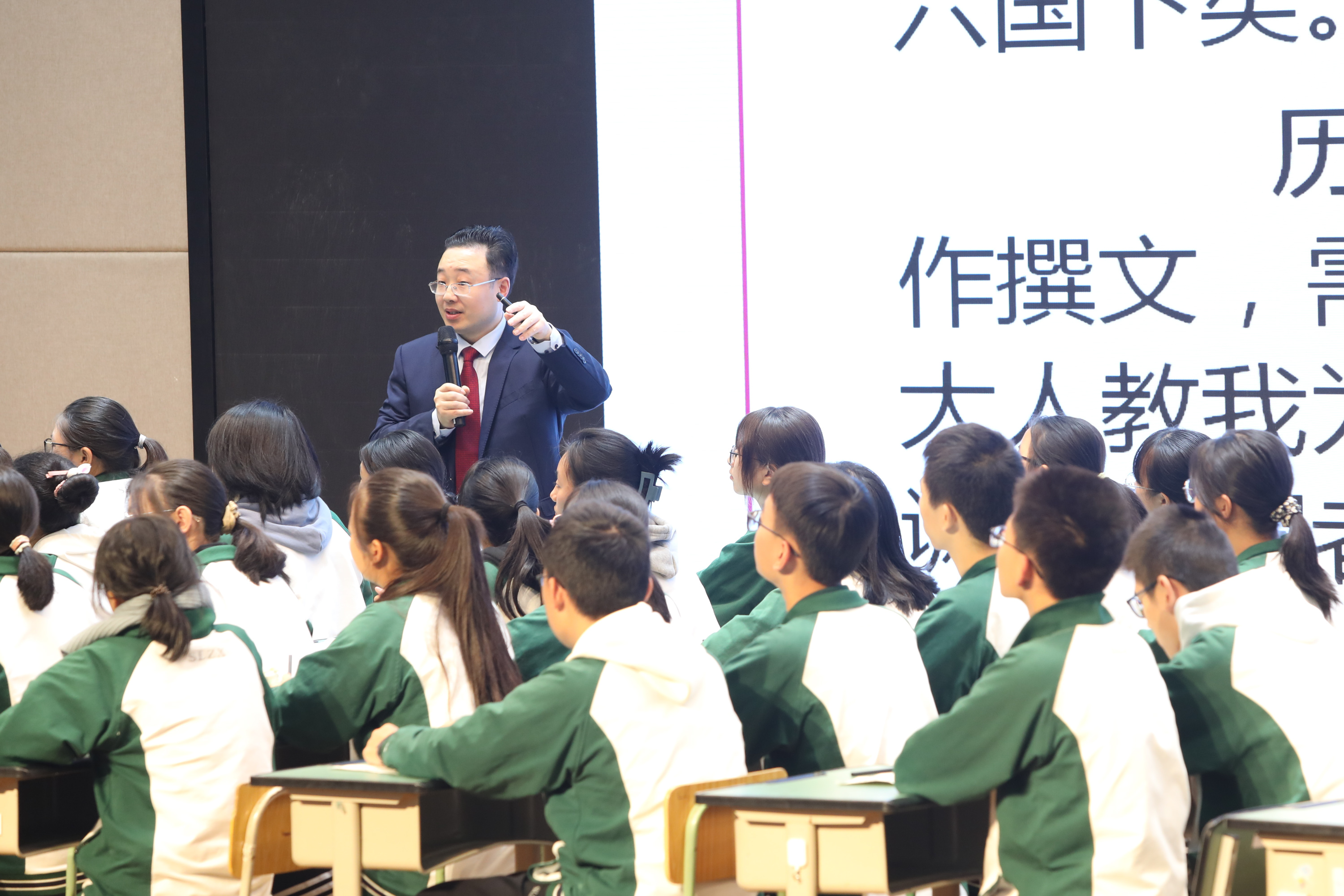 接著,李華平教授進(jìn)行《六國(guó)論》的授課。李教授先就預(yù)習(xí)交流提出了三個(gè)問(wèn)題以了解同學(xué)們課前預(yù)習(xí)情況,在學(xué)生互問(wèn)互答環(huán)節(jié)梳理了部分重難點(diǎn)字詞和句式翻譯,掃清了閱讀障礙。之后,李教授以“關(guān)于《六國(guó)論》的家庭討論會(huì)”為主題,展示蘇洵、蘇軾、蘇轍和蘇小妹對(duì)六國(guó)滅亡的看法。朗讀與理解相結(jié)合,討論與交流相碰撞,在矛盾對(duì)立中逐步深入文本,最后李教授以蘇小妹的觀點(diǎn)進(jìn)行升華,明確了《六國(guó)論》寫(xiě)作意圖,并提出了圍繞中心裁剪的寫(xiě)作方法。李教授認(rèn)為:橫看成嶺側(cè)成峰,寫(xiě)作撰文需以我之眼裁剪素材,為我所用。