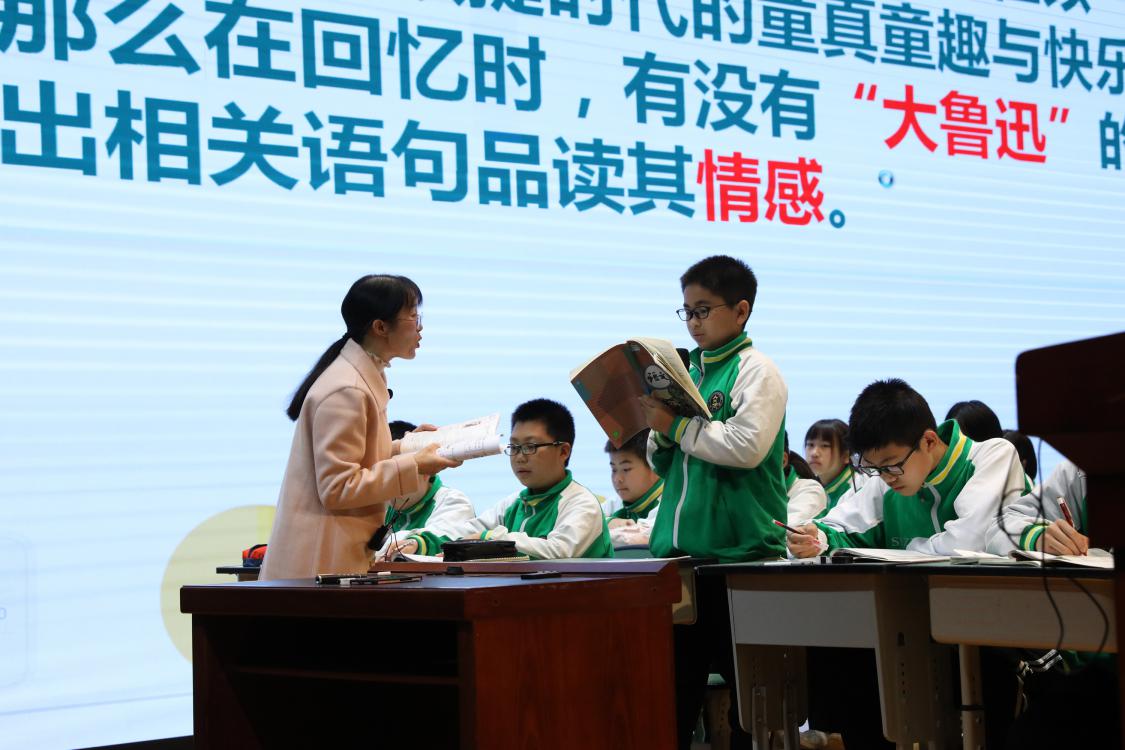 首先,梁萍老師以“向文本更深處漫溯”為主題進(jìn)行《從百草園到三味書(shū)屋》的第三課時(shí)授課。梁老師先以一個(gè)問(wèn)題引發(fā)學(xué)生的思考和興趣,接下來(lái)從讀懂三味書(shū)屋的“苦”與“樂(lè)”、探究大小魯迅之情感矛盾兩個(gè)方面帶領(lǐng)學(xué)生細(xì)讀文本,深入體會(huì)主旨思想。梁老師的問(wèn)題循序漸進(jìn),以《從百草園到三味書(shū)屋》的今昔對(duì)比為載體圍繞“癥候解讀”教授學(xué)生探究回憶性散文的方法。學(xué)生積極思考踴躍發(fā)言,思維的火花不斷碰撞,課堂氛圍十分熱烈,給在場(chǎng)老師留下了深刻印象。