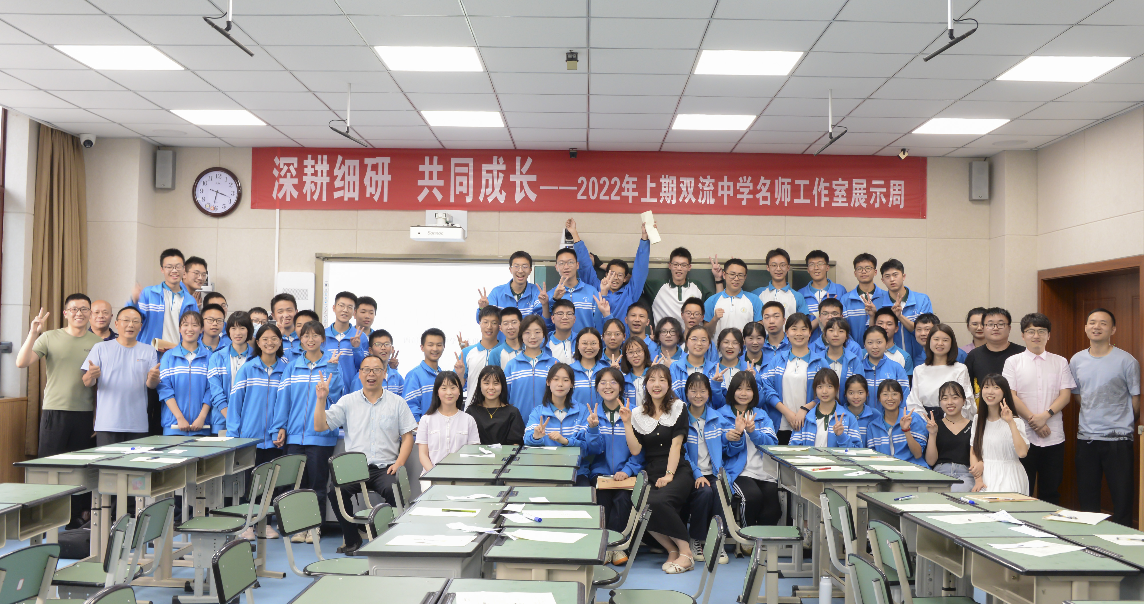 為提高班主任的整體素質(zhì),促進(jìn)班主任的專業(yè)成長(zhǎng),2022年5月26日,雙流中學(xué)余曉冬班主任名師工作室于景賢樓304開展了以“聚智促五育發(fā)展,踔厲謀培育創(chuàng)新”為主題的研討活動(dòng)。本次研討活動(dòng)為“課堂展示+評(píng)課交流”的形式,讓在場(chǎng)的青年教師們受益匪淺。本次研討活動(dòng)由劉霞老師主持,四川省雙流中學(xué)副校長(zhǎng)杜江濤,研培處主任彭春暉,成都市優(yōu)秀班主任、成都市優(yōu)秀教師徐文林,成都市優(yōu)秀班主任、成都市優(yōu)秀教師、班主任名師工作室導(dǎo)師余曉冬,工作室全體成員及部分青年教師參加此次研討會(huì)。