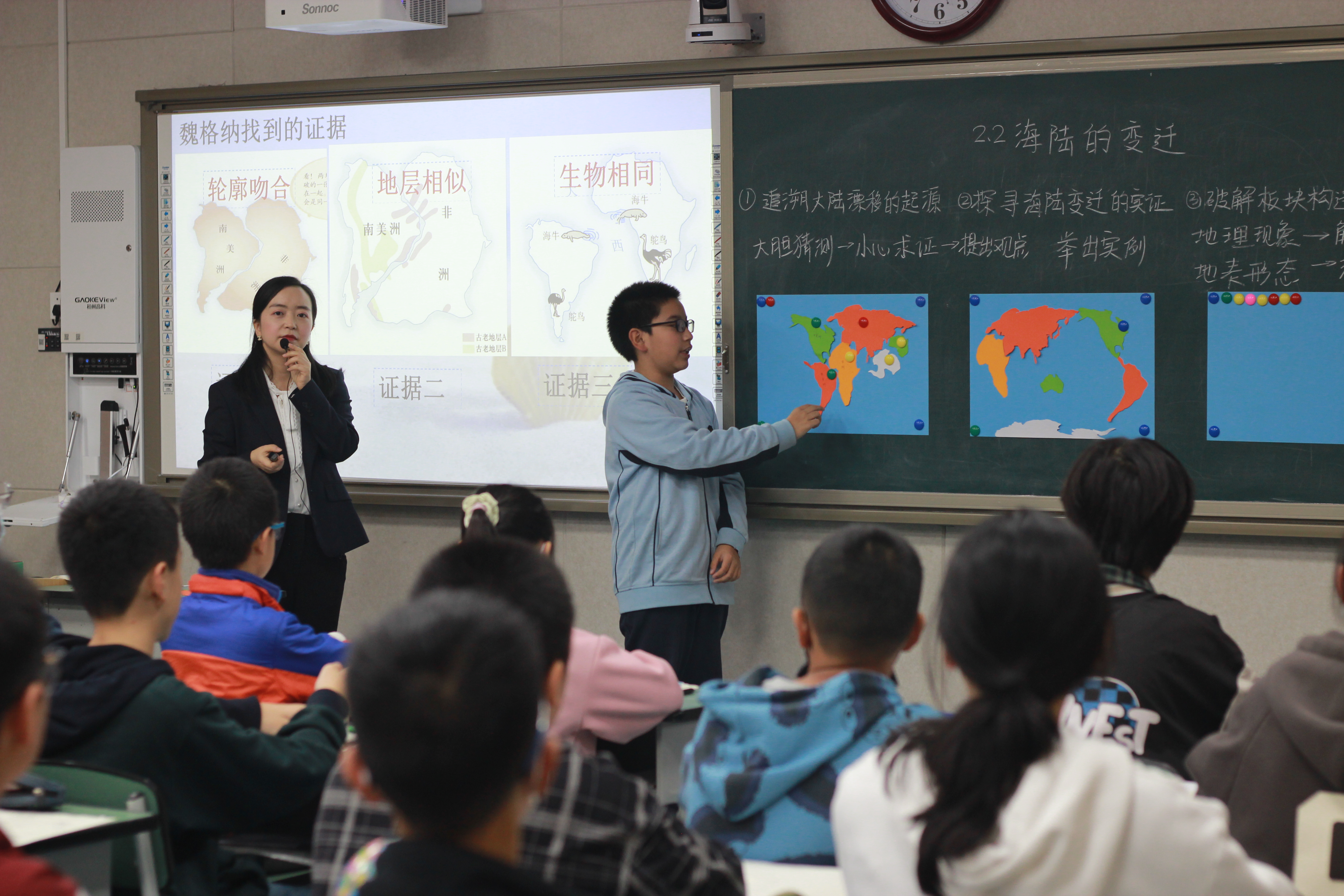 楊老師以“過去—現(xiàn)在—未來”為時(shí)間線索,通過學(xué)生動(dòng)手繪制板塊圖,調(diào)動(dòng)學(xué)生參與課堂活動(dòng),引導(dǎo)學(xué)生在課堂拼接、繪制板塊圖來感受海陸變遷,暢想其前世、今生和未來。學(xué)生在科學(xué)探索精神的指引下,步步縱深地完成了課堂探究活動(dòng)。整堂課學(xué)生對地理現(xiàn)象本質(zhì)的求真求實(shí)探索精神,彰顯了地理學(xué)科思維的不斷進(jìn)階。