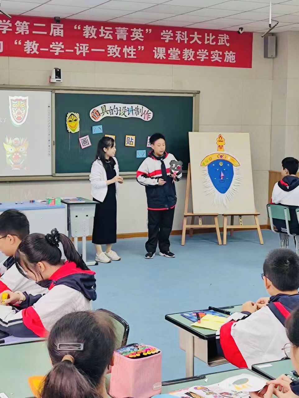李老師在講授面具制作核心方法和要領(lǐng)的同時(shí),結(jié)合新課標(biāo)的核心素養(yǎng)要求,將課程進(jìn)行重構(gòu)。在展示部分,與學(xué)生一起進(jìn)行了音樂、美術(shù)、舞蹈學(xué)科的大融合,打造了一堂結(jié)構(gòu)精巧、氣氛活躍的優(yōu)質(zhì)美術(shù)課堂。在學(xué)科大融合理念之下的美術(shù)課堂,既訓(xùn)練了學(xué)生的動(dòng)手能力,又充分展示了學(xué)生的繪畫水平和音樂舞蹈天賦。