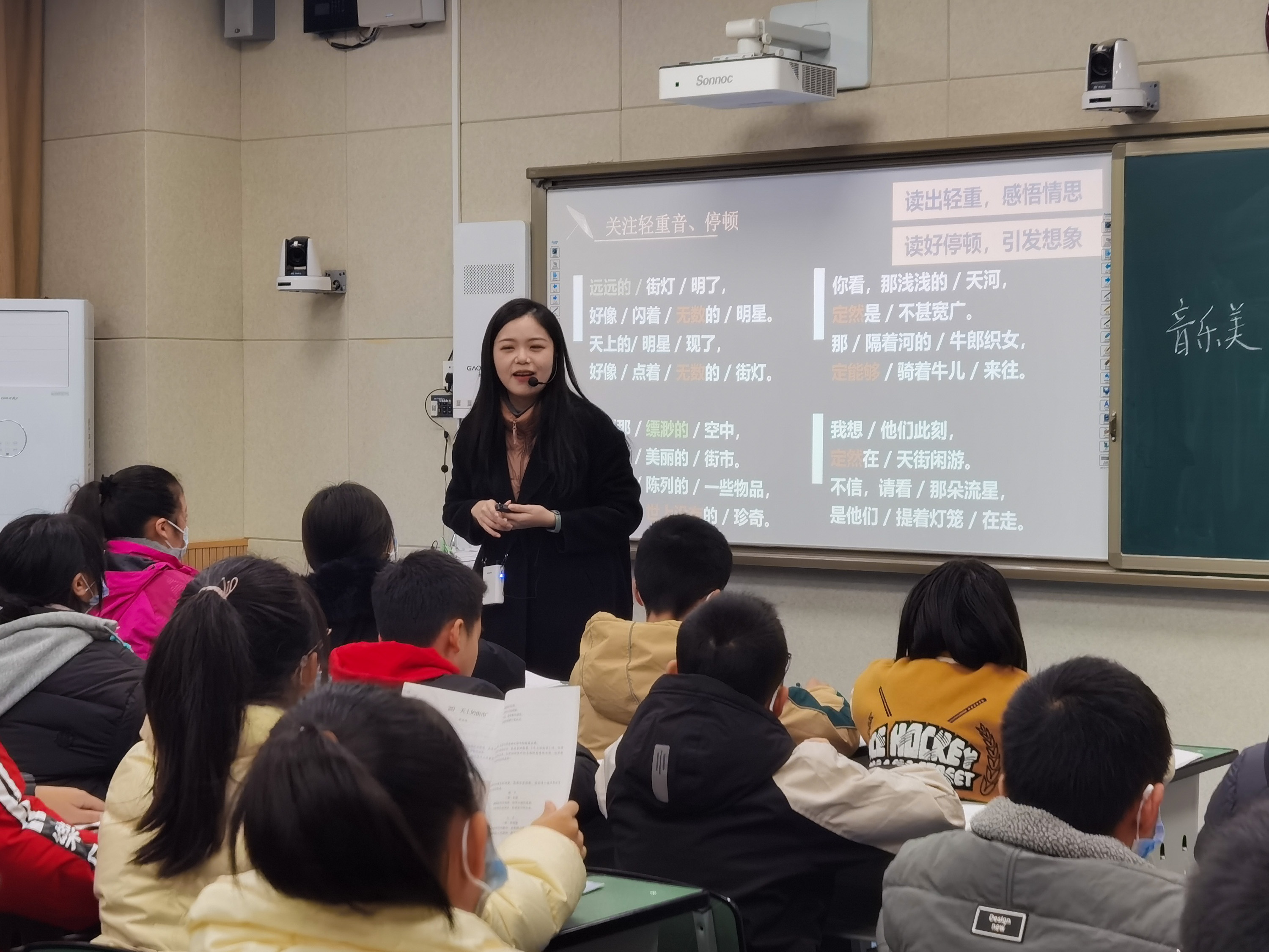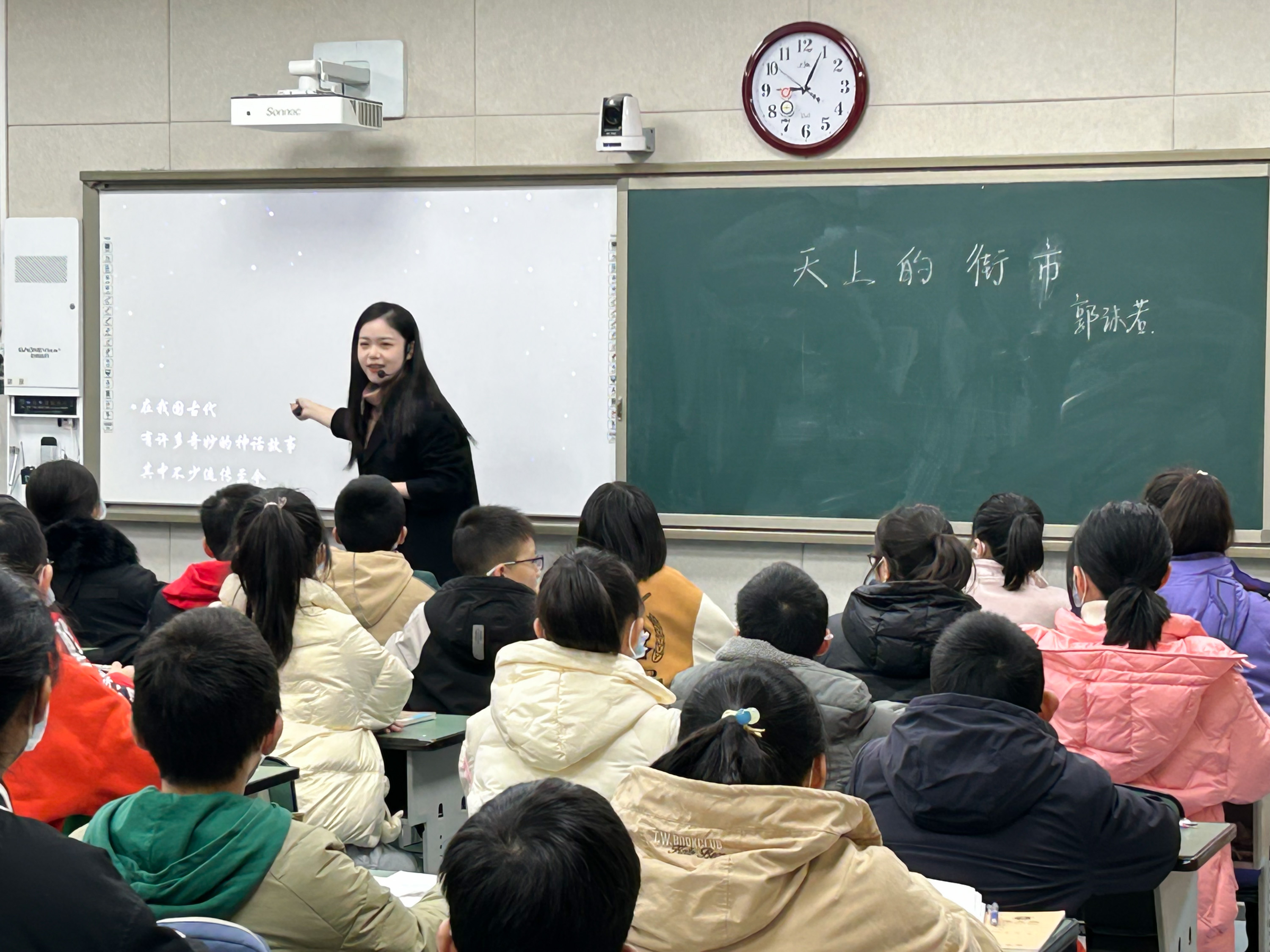 “迢迢牽牛星,皎皎河漢女?!睔v朝歷代的文人墨客,無(wú)不對(duì)浩瀚宇宙保持著探索的情懷。黃老師就為同學(xué)們插上一對(duì)想象的翅膀,帶領(lǐng)大家進(jìn)入到詩(shī)人創(chuàng)設(shè)的夢(mèng)幻天空,自由而歡愉地遨游。黃老師讓大家看到了一幅美妙的天上街市圖。最后同學(xué)們用天真樸實(shí)語(yǔ)言進(jìn)行了小詩(shī)創(chuàng)作,并在課堂積極朗讀分享,完成了一趟快樂(lè)而奇幻的詩(shī)歌之旅。