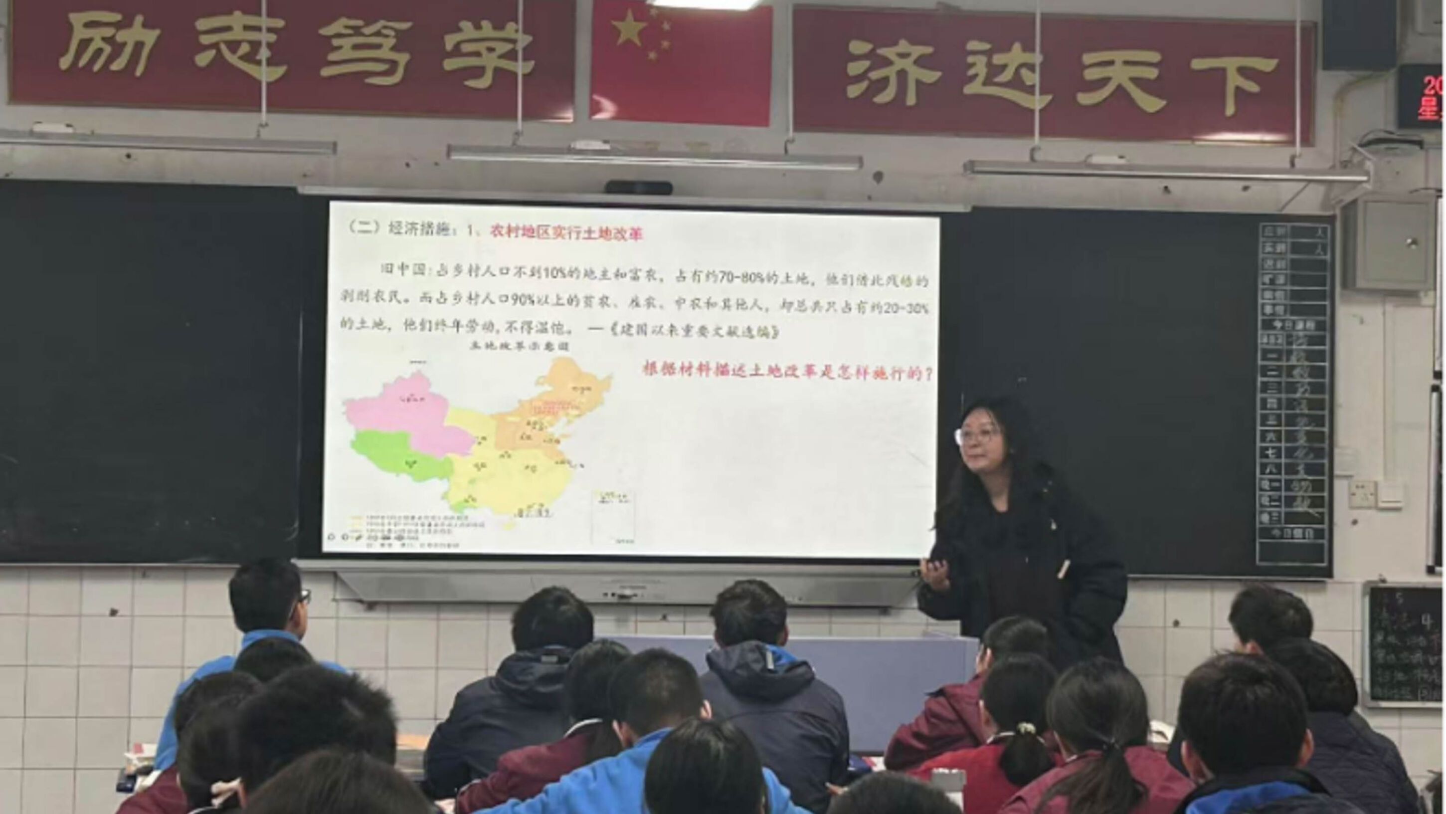 本次聯(lián)合教研的核心環(huán)節(jié)之一是語文、數(shù)學(xué)、英語和歷史學(xué)科的同課異構(gòu)活動(dòng)。相同的教學(xué)內(nèi)容,不同的教學(xué)風(fēng)格與策略,在四間教室里同時(shí)精彩上演。