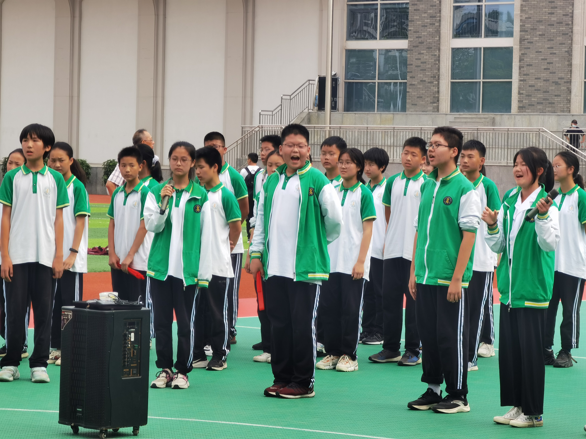 節(jié)間休息時(shí),各班進(jìn)行了“英語(yǔ)合唱”展示,優(yōu)美動(dòng)聽(tīng)的旋律,緩和了緊張激烈的比賽氛圍,也讓各隊(duì)隊(duì)員得到了充分的休息。