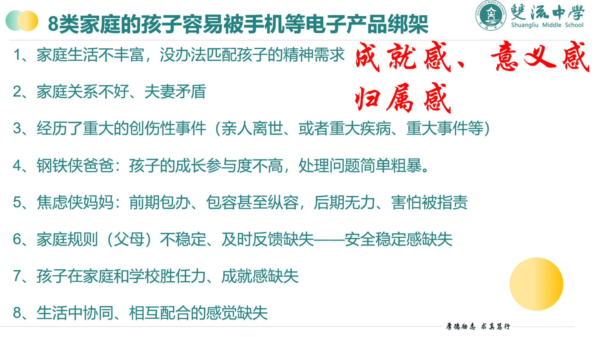 本期課程由國家二級心理咨詢師,雙流區(qū)家庭教育教師團(tuán)講師,雙流中學(xué)家校社協(xié)同育人中心家庭教育指導(dǎo)師,雙流中學(xué)專職心理老師——伍林老師帶來《孩子沉溺手機(jī)的真相》。伍老師從三個(gè)方面帶領(lǐng)我們理解孩子沉溺手機(jī)背后的原因及調(diào)整辦法。