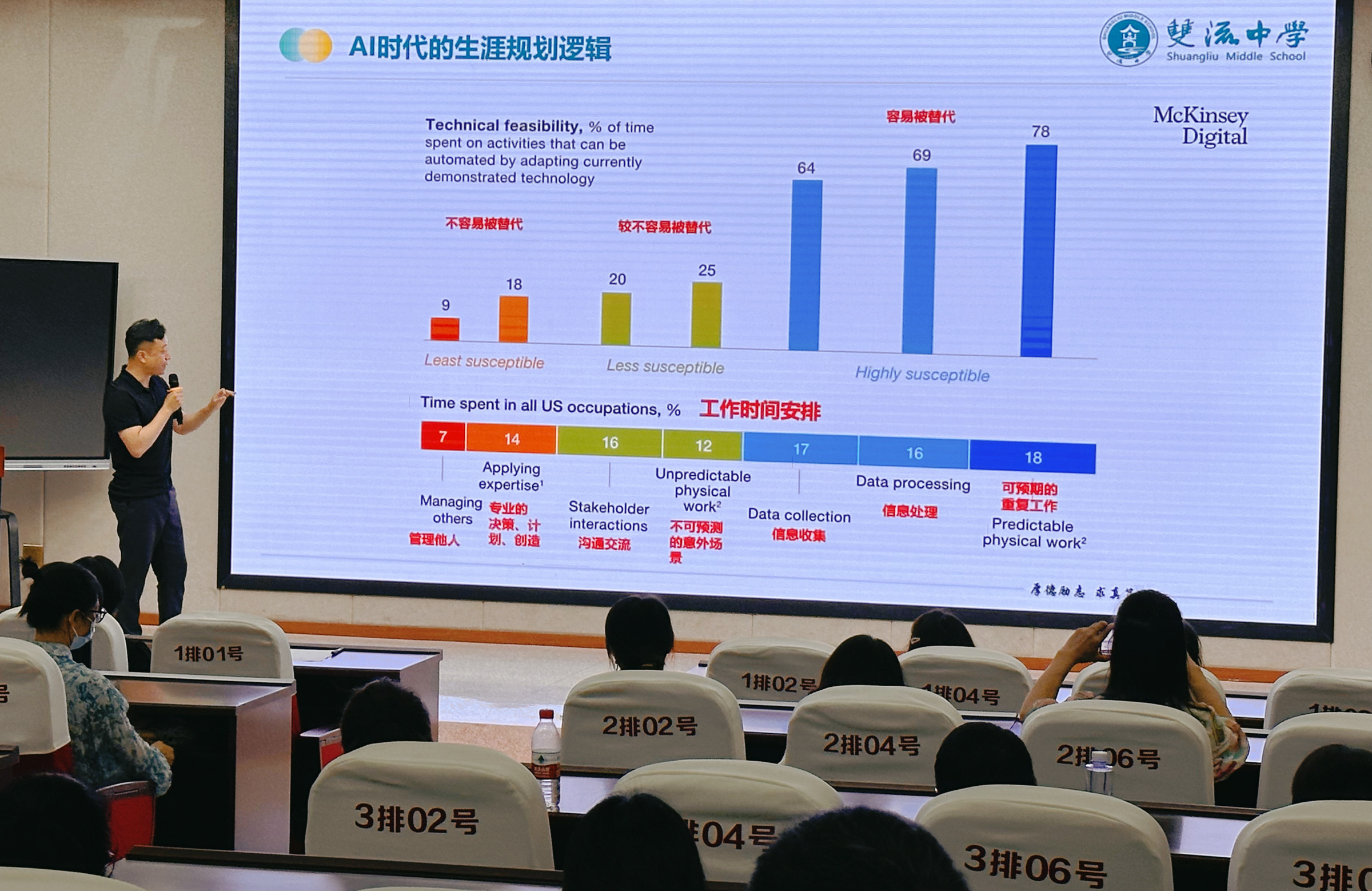 隨著AI技術(shù)的日益發(fā)展,傳統(tǒng)的職業(yè)路徑和技能需求正在經(jīng)歷深刻變革。在這一趨勢下,家長對于子女的教育和未來規(guī)劃充滿了新的焦慮和期待。雙流中學(xué)深刻理解到這一點(diǎn),特別為家長們帶來了這場深度的講座,旨在用最前沿的研究和數(shù)據(jù),開拓家長對未來職業(yè)發(fā)展趨勢的認(rèn)知。