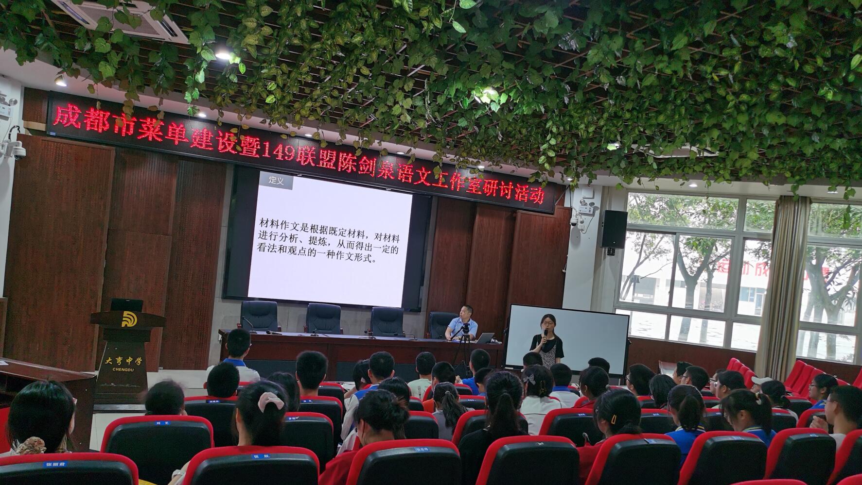 為進(jìn)一步提升語文核心素養(yǎng)和寫作能力,同時落實149區(qū)域教育聯(lián)盟的核心精神,促進(jìn)教育資源的共享,2021年5月13日上午,成都市教師發(fā)展基地校語文菜單培訓(xùn)暨149聯(lián)盟陳劍泉語文名師工作室活動在大彎中學(xué)舉行。本次培訓(xùn)活動由雙流中學(xué)陳劍泉老師統(tǒng)籌組織,線上與線下同步進(jìn)行,大家齊聚一堂,聚焦悟理文本的寫作思維教學(xué)。