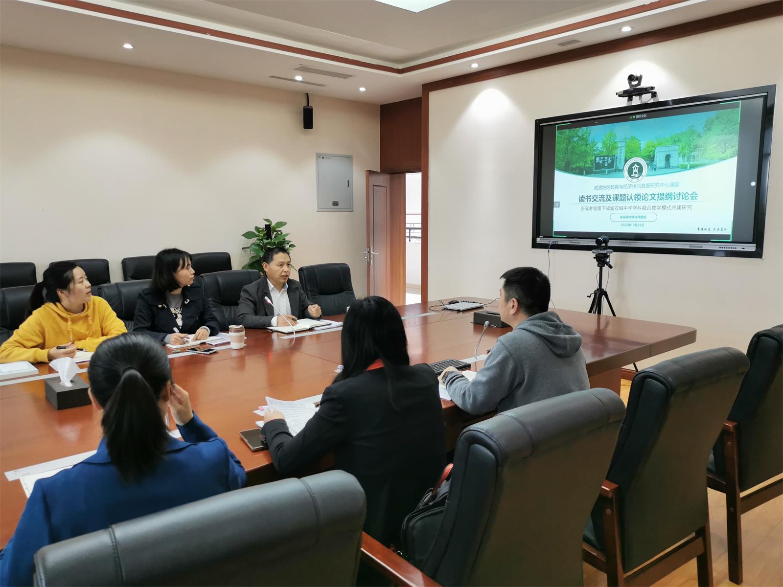 2022年10月29日下午,陳劍泉科研工作室與重慶市暨華中學(xué)聯(lián)合申報(bào)的課題——新高考背景下成渝兩地中學(xué)學(xué)科融合教學(xué)模式共建研究的推進(jìn)會如期舉行,線上線下同步進(jìn)行。線下會議在雙流中學(xué)景賢樓521會議室,重慶市暨華中學(xué)的李翠、劉婷兩位老師通過騰訊會議遠(yuǎn)程參與。