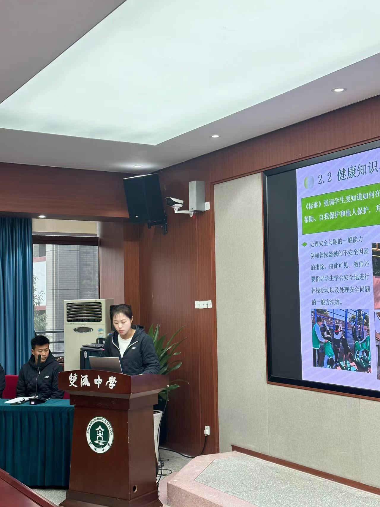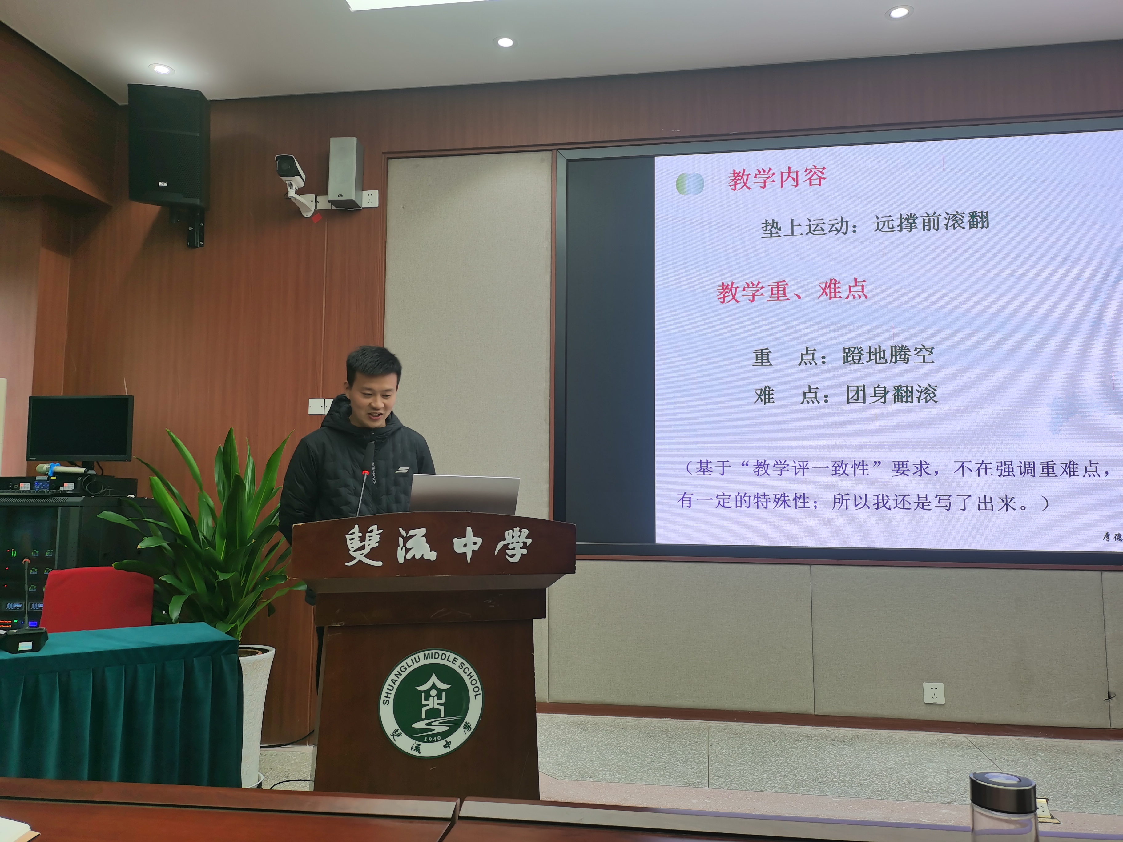 四位老師從新舊課標(biāo)對比、體操類教學(xué)內(nèi)容課標(biāo)解讀、體操類教學(xué)課程實(shí)施、大單元教學(xué)設(shè)計及示范性課時設(shè)計等方面進(jìn)行了分析。講解中既有理論知識支持,又有實(shí)踐案例支撐,知行結(jié)合,形式豐富,內(nèi)容詳盡,充分展示出雙流中學(xué)初中體育備課組在理論與實(shí)踐、教學(xué)與評價等方面進(jìn)行深入研究后所取得的豐碩成果。