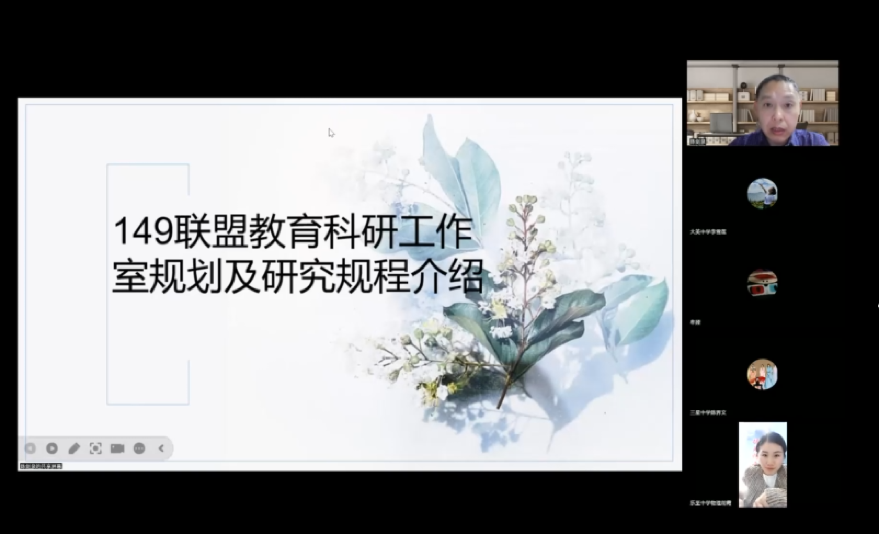 2024年4月11日晚,149跨區(qū)域教育聯(lián)盟科研工作室第一次工作會議通過騰訊會議在線舉行,共商工作室的規(guī)劃并學(xué)習(xí)課題研究規(guī)程。本次會議由雙流中學(xué)正高級教師、149聯(lián)盟教育科研工作室領(lǐng)銜人陳劍泉發(fā)起,工作室成員參會。