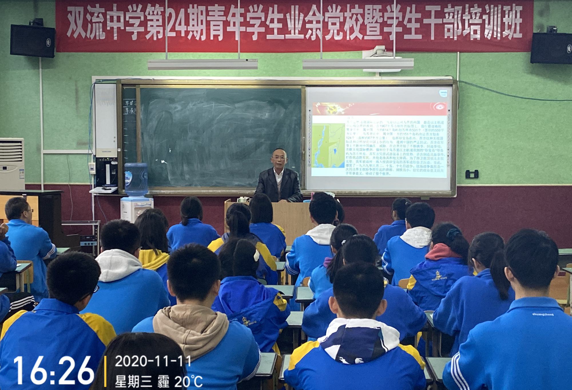 2020年11月11日,雙流中學(xué)青年學(xué)生黨校課堂有幸邀請(qǐng)到原31師413團(tuán)珍寶島自衛(wèi)反擊戰(zhàn)老兵陳家齊先生用“形象生動(dòng)講故事、深入淺出說(shuō)道理”的形式為我們帶來(lái)了生動(dòng)的一課。